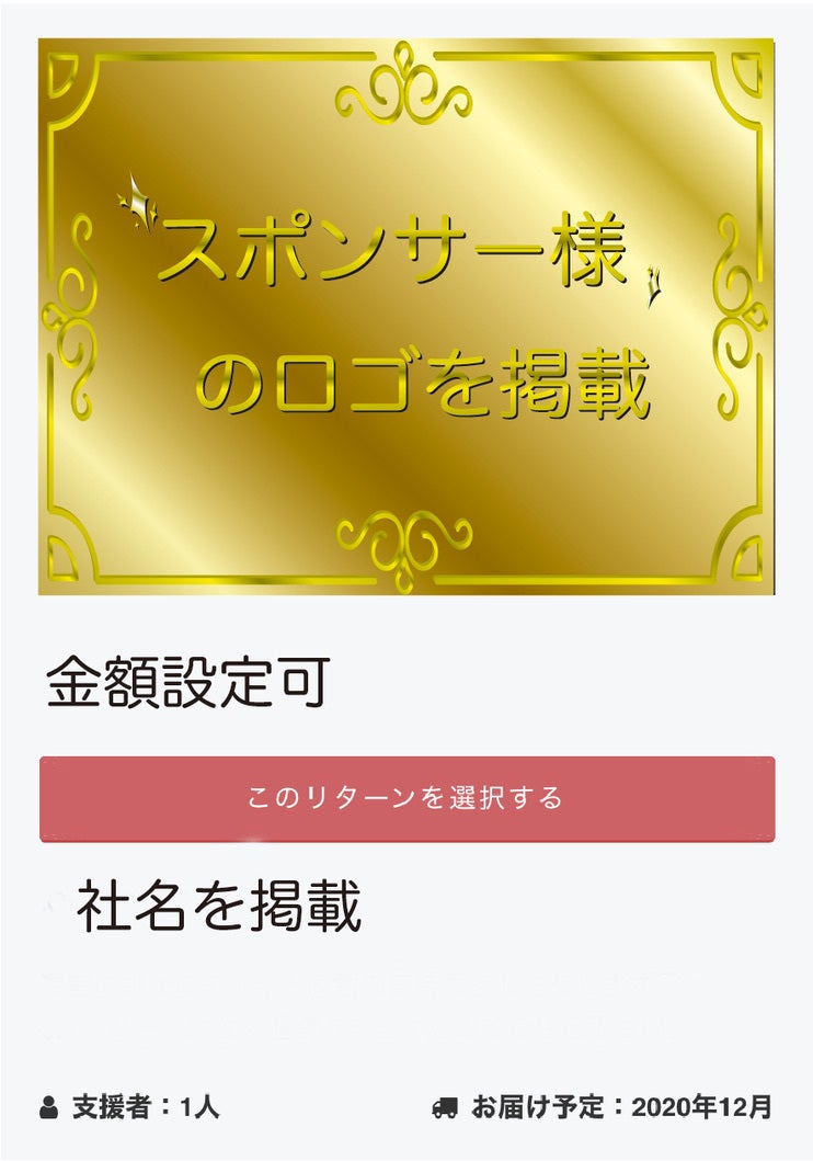 オーダーメイドのリターンを設定公開の場合は、リターンにロゴと社名、協賛金額を掲載しますので、専用のリターンを選択してご支援ください。