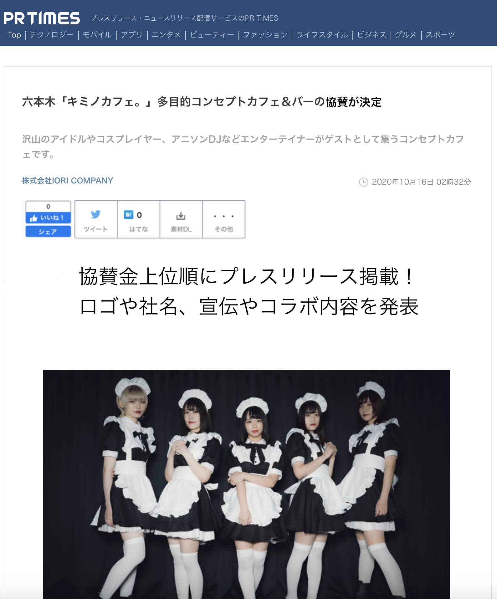 PR TIMESでメディアへ広く協賛やコラボが発表されるので、宣伝効果抜群です。