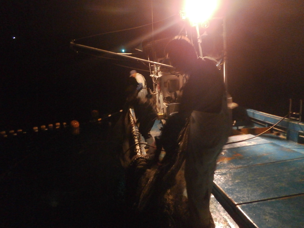 待ちの漁業ということで、仕掛けや網の手入れが重要です。