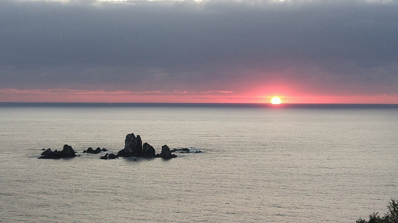 (九州は熊本県、天草市天草町大江 夕陽の見える西海岸、ラピュタの木の沖にて定置網漁をしています。)(写真:ホクモウ株式会社)