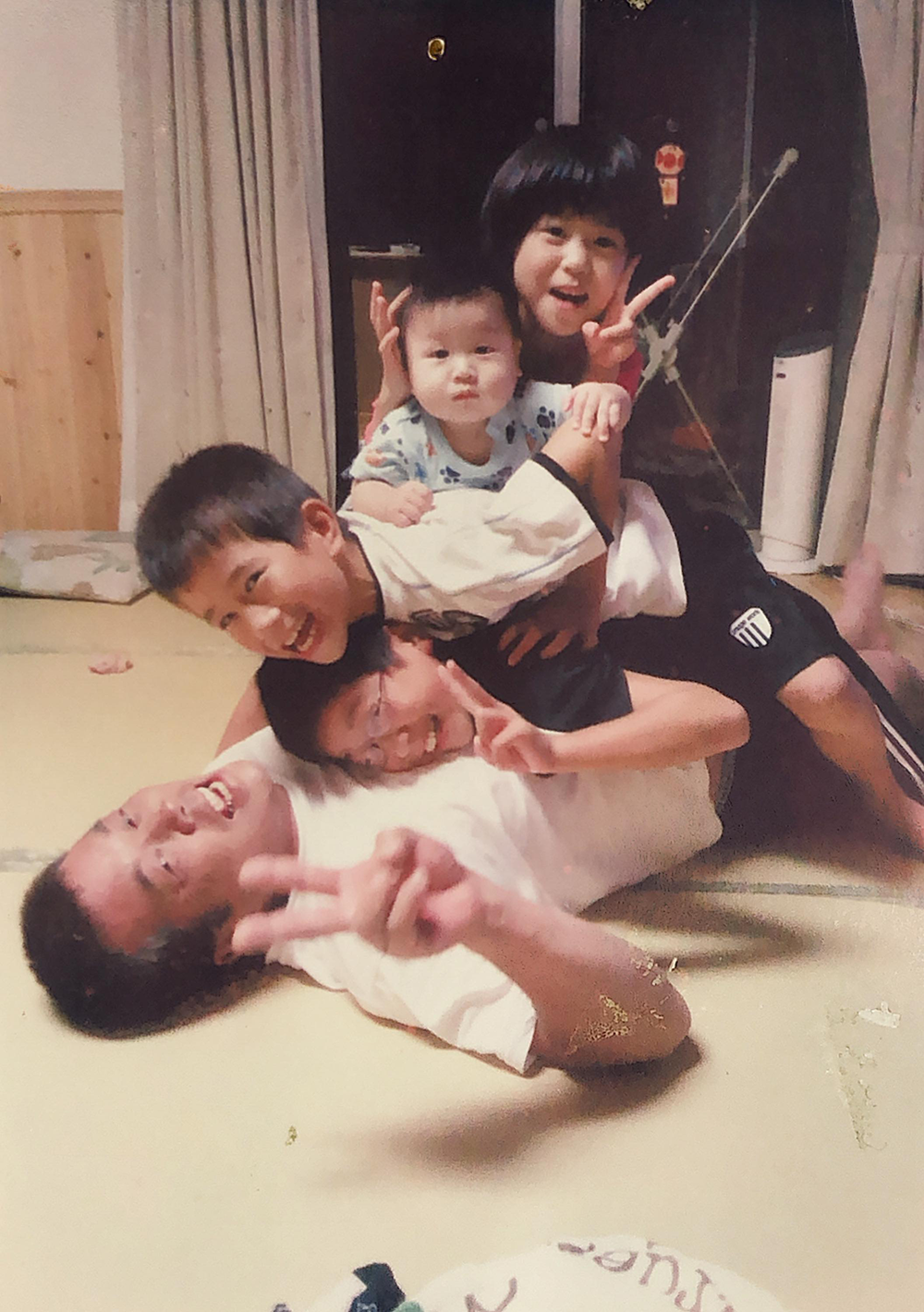 家は軍浦(いくさがうら)の真ん前。服のまんま飛び込む子ども達は海に育てられたようなもの。ここに帰ってくれば心が落ち着く場所です。