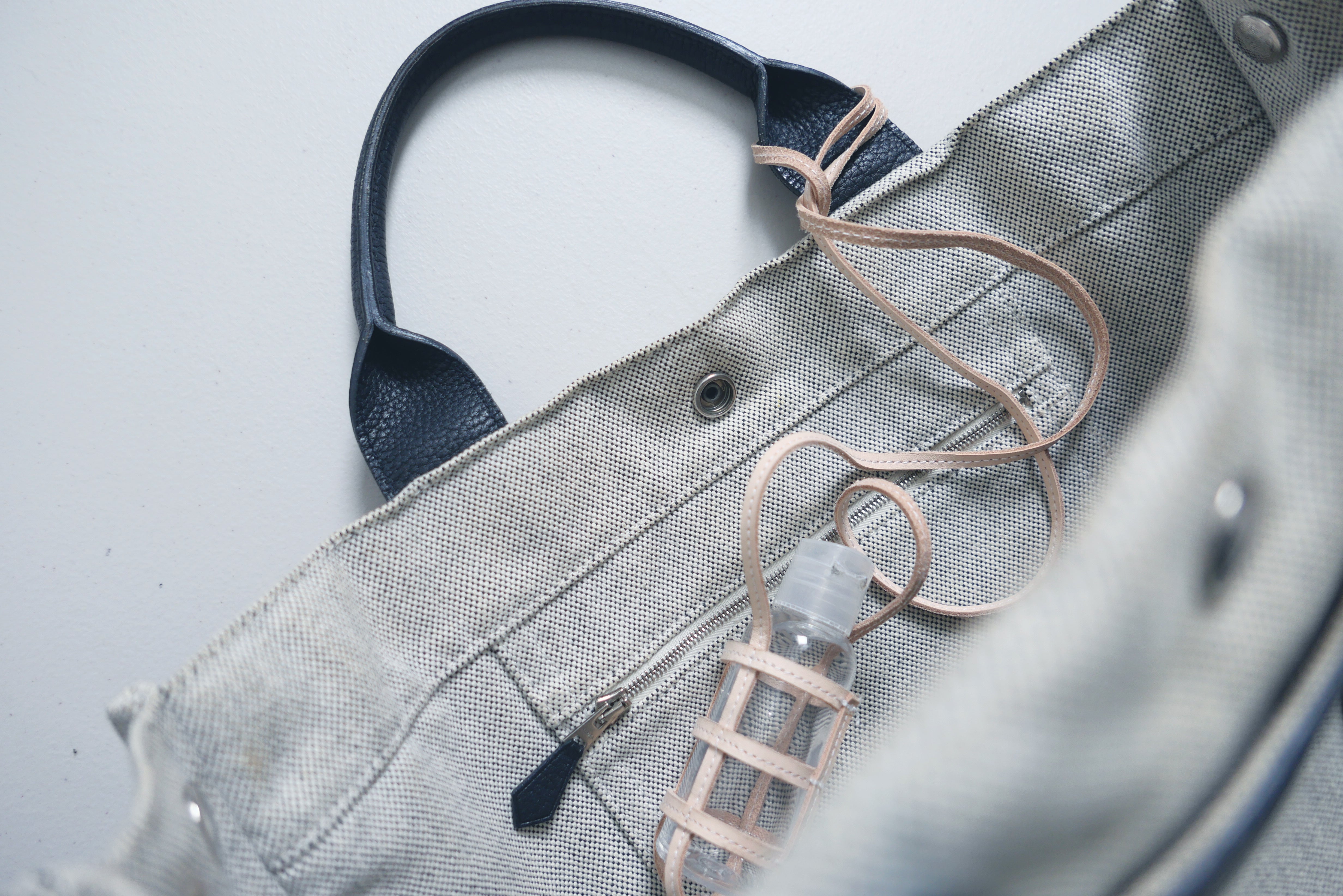 鞄の持ち手に取り付けても便利です。鞄の中からすぐに消毒ハンドジェルを探し出せます。