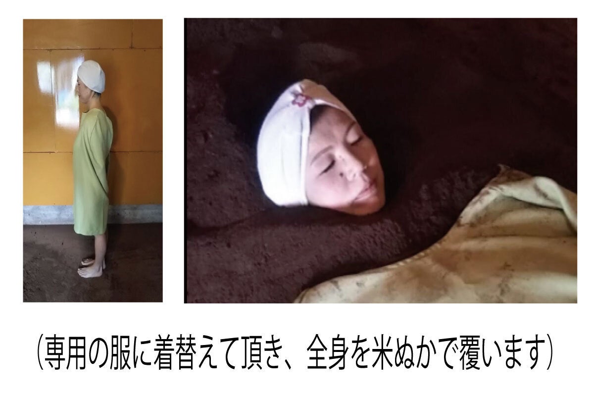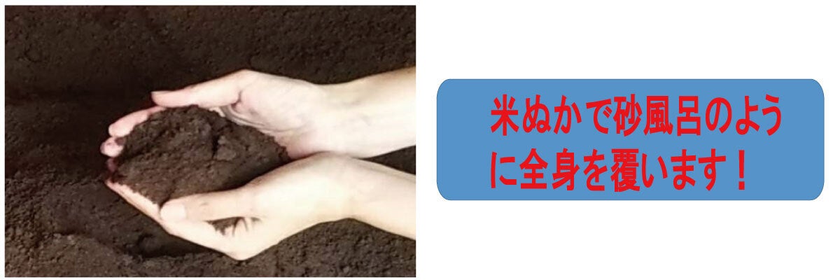 米ぬかが自然発酵する熱(約60度まで上がります)は有機遠赤外線の波動熱と言われ、体の芯まで届きデドックス効果が期待できます。