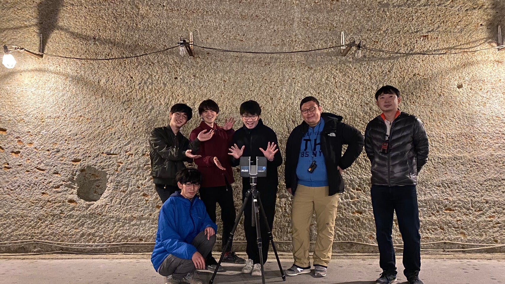 当日はクモノスコーポレーション株式会社さま(以下クモノスさん)と一緒に、計測地である大谷資料館の地上部分と地下空間を3Dスキャンしてきました!