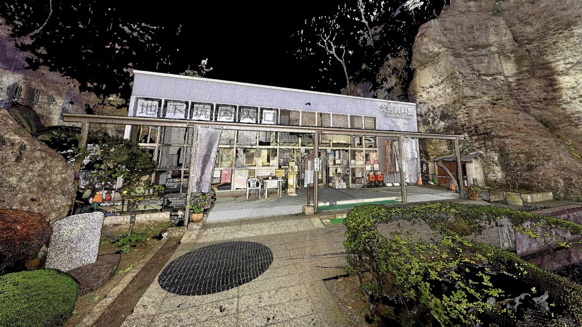 本当に写真にしか見えないくらい細かくて驚きましたが、点群でした。よく見てみると細かい点がポツポツたくさんあるのがわかります。