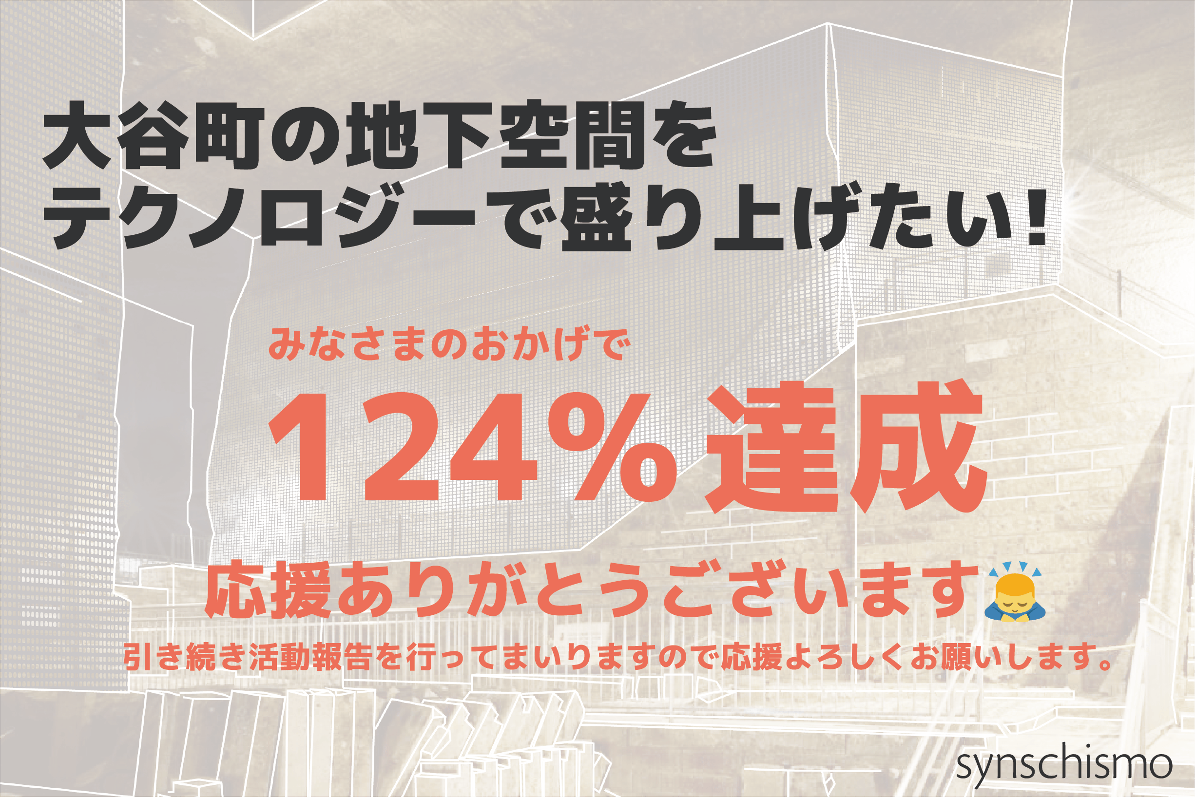 みなさまの後押しにより、クラウドファンディングは124%という、当初の想定していた以上の共感とご支援を頂き、無事に成功させることができました。