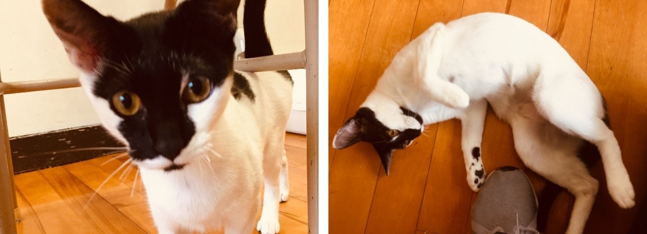 とっても個性的な柄のお嬢さん!人間への警戒心が全くない子で、誰にでもガンガン近寄り、ゴロ~ン&ナデナデしてー!とアピール^^しょっちゅうお世話の邪魔をしてきますが、可愛くて嬉しい担任なのでした。オイタの全くないおりこうさんです!