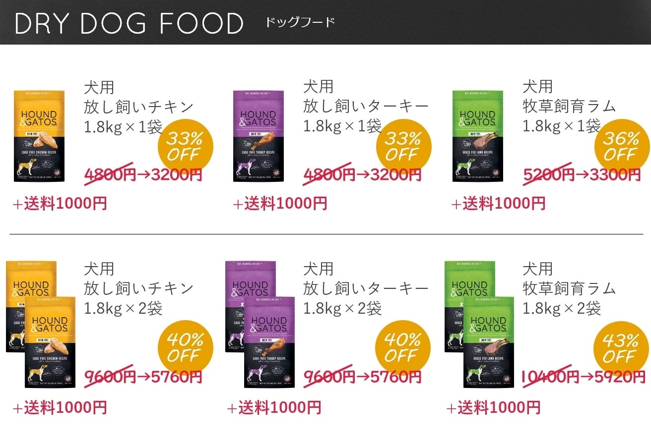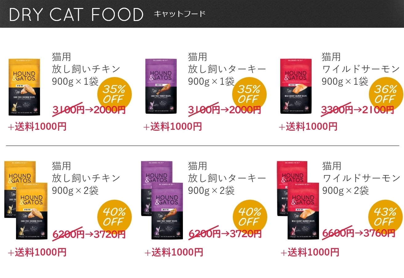 ※それぞれ、 フード代金+ 送料1000円(全国一律)となります。