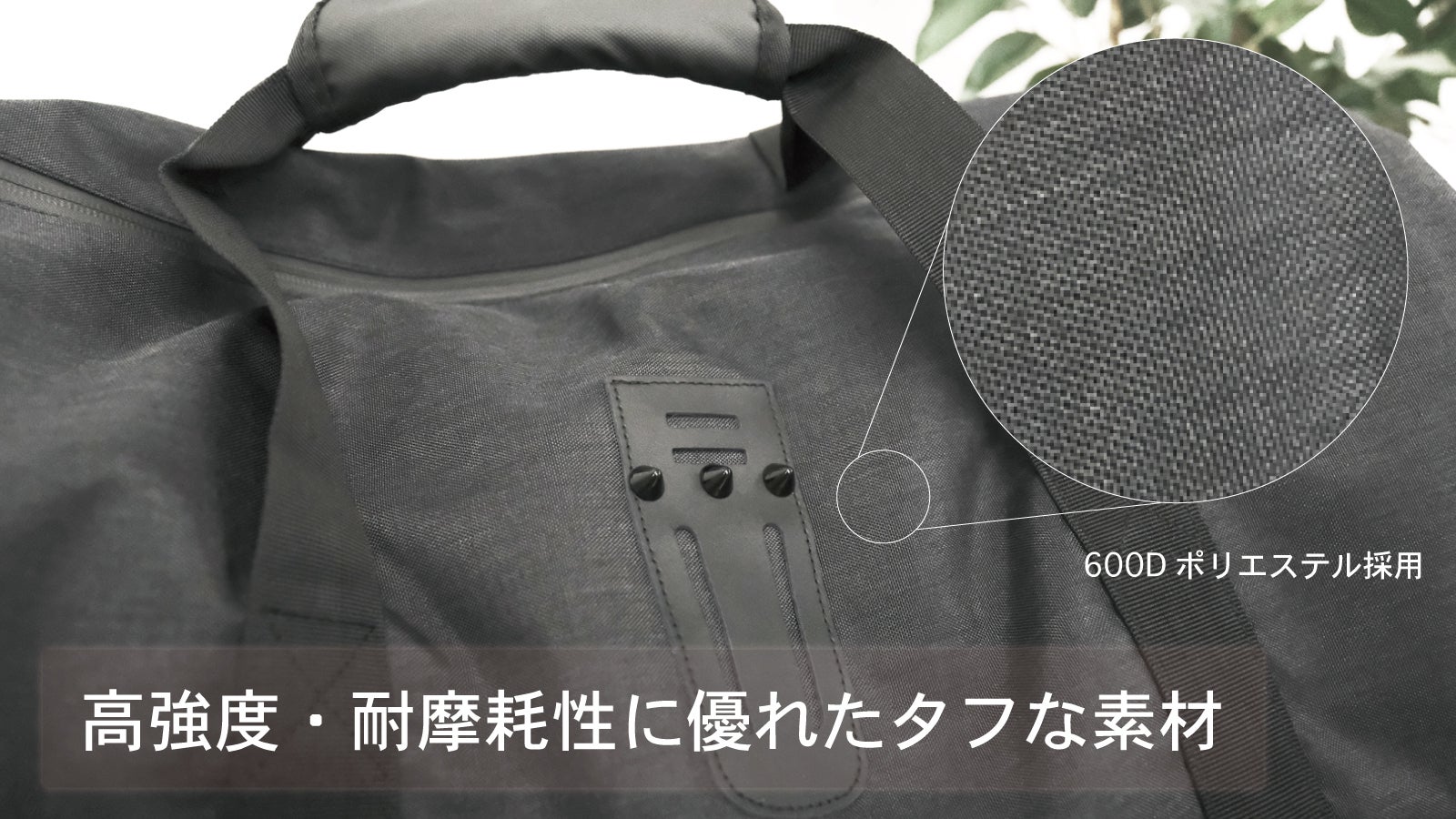 高強度かつ耐摩耗性に優れたポリエステル素材、日常遣いには十分すぎる厚手の600Dを採用しています。また、撥水加工により水が侵入しずらく、汚れもつきにくくなっています。
