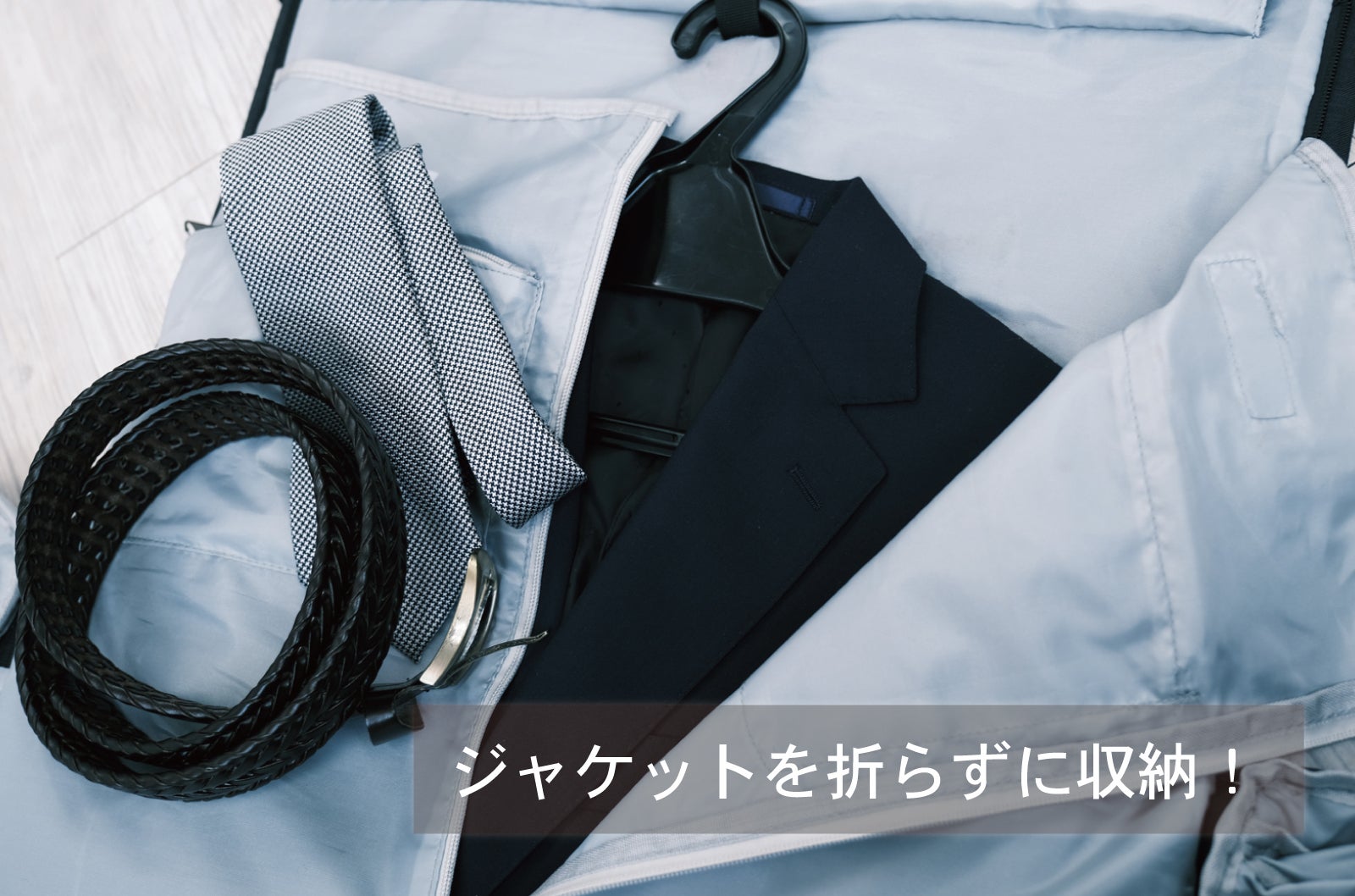ハンガーループとサイドベルトにより、スーツやジャケットの型崩れ・シワを防ぎます。