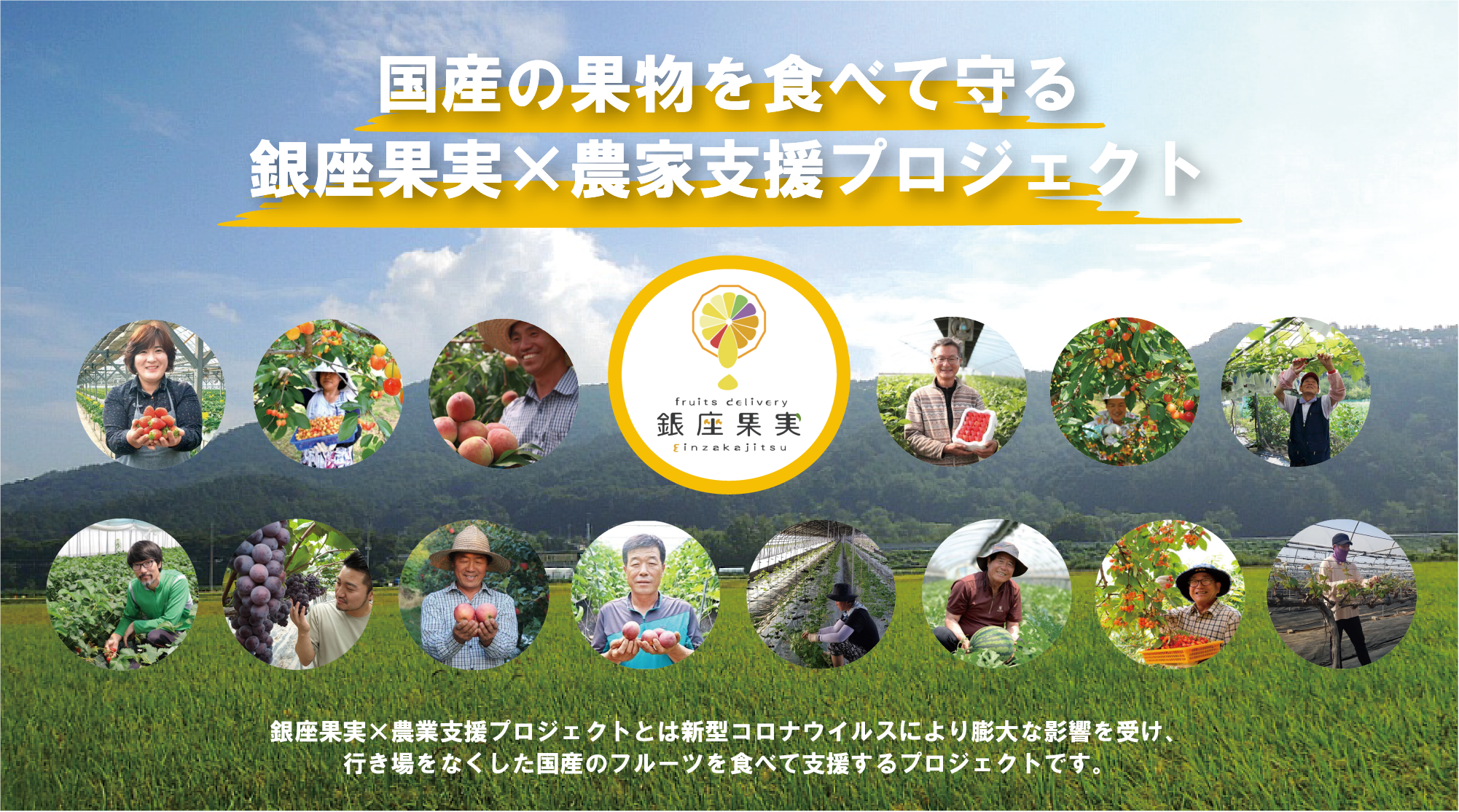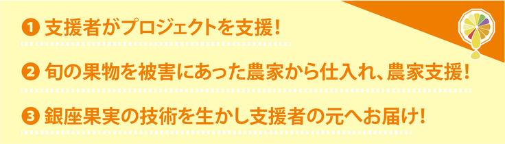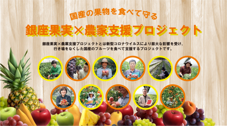 このプロジェクトは、広がるコロナ禍により行き場を失った国産の果物に、銀座果実の技術を加え全国の皆様に届けする、国産の果物を食べて守る農家支援プロジェクトです。ぜひ皆様のお力添えをお願いいたします。