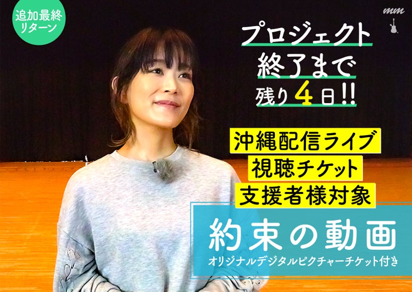 森恵、自身初のクラウドファンディングが残り 3日となりました。今回のプロジェクトは やはり どうしても「沖縄配信ライブ視聴チケット」を手にとってもらいたい!その思いが何よりも強いので、そんな気持ちも含めて、今日の活動報告は 撮影場所と収録曲を発表します!以下、ネタバレ含みます!昨日の森恵公式YouTube配信を ご視聴なられた方もいると思いますが、今回の撮影&収録場所の一つに 沖縄の離島で行いました。その離島は、、、無人島の「ナガンヌ島」です!海に囲まれた素晴らしい場所での撮影&収録でした!(前日まで強風による波の兼ね合いで、船が出るかどうか分からず、離島での収録が出来ない可能性もあったのですが 願いが通じました!) 無人島のナガンヌまで スタッフ全員で 頑張って撮影機材を運びました!その甲斐あって、最高の映像が撮れました!ナガンヌ島 全体が見える ドローンによる空撮は絶景です!(ドローンを入れれたのも ネクストゴール達成のおかげです!涙) そんなナガンヌ島での撮影で、森恵は 顔には 日焼け止めを たっぷり塗ったのですが、まさかの背中の日焼けアドバイスを忘れてまして...森恵の背中が日焼けで真っ赤になりました...沖縄の11月の日差しがこんなに凄いなんて... 日焼けで痛い痛いと数日言いながら楽しむ沖縄生活でした! (女性のそんな所に目がいかず、森恵さん ゴメンナサイ!)そして!世界遺産の中城城跡でも撮影しました!森恵が 世界遺産の場所で撮影って凄いですよね!ここでも ドローンを飛ばして空撮しました!もうスケール感凄いです!森恵史上、最高のライブ映像作品の一つになる予感がしてます!さらに!沖縄といえば 歴史のある「赤瓦(あかがわら)」の建物!以前より 交流のある 宮沢和史さん(THE BOOM)が プロデュースする「みやんち」という場所で 撮影しました!本当に素敵な場所で収録前には お蕎麦も頂きました!赤瓦の素敵なお店です!そんな みやんち だけでなく、沖縄体験王国 むら咲むら内にある「謝名亭(じゃなてい)」でも 撮影収録しました!この謝名亭では、森恵が自身でイラストした オリジナルTシャツを着用して撮影収録してます!謝名亭は 沖縄の読谷市にあるのですが、NHKの大河ドラマ「琉球の風」 のセットを そのまま生かした施設なんです。大河ドラマ撮影の場所で、森恵のライブ撮影収録!今回の沖縄での撮影収録は 本当に すべてにおいて 120%の満足度の映像をお届け出来ると思います!(こんなに 収録場所を増やせたのも皆さんのおかげです!)もちろん、毎年お世話になってる 那覇のTOPNOTEでの収録も 最高な形で撮れました!今回の沖縄でのライブ撮影を行った場所は5箇所でした!(当初は収録場所は2箇所の予定だったのですが、皆様のおかげで倍以上に増やせました!) 5箇所での 色んな景色や雰囲気、そして、そこでしか見れないライブ映像をお届けします!写真集にも、そんなライブ模様のショットがもちろん 入ってきます!全部見逃せないです!そして!そして!今回の 沖縄配信ライブ視聴チケットの “収録曲”を お伝えします!森恵が 今回のプロジェクトを通して感じた気持ちと、それぞれの収録場所で歌うべき曲、歌いたい曲を収録しました。[収録曲/順不同]RDY風の吹く方へ鮮やかな旅路コルク悲しみの傘プランクトンGoing up! Glowing Now!いつかのあなた、いつかの私I think of youStay Home蒼の向こう傷Cozyコタエアワセ遠い記憶and...プロジェクト終了まで 残り3日!プロジェクト終了が見えてきて ここにきて 終わりたくない!と 思ってきました。(皆さんと一緒に作る この世界、皆さんと一緒に作る この日常が 凄く楽しくもあり、少し寂しくなってきました!)残り3日ですが 皆様と森恵が一緒に作り上げた この作品を沢山の人に見てもらいたいです!伝える輪を広げて欲しいです!最後の一押し!どこまでいけるか 見てみたいです!応援 宜しくお願いします!森恵 応援プロジェクトスタッフPS:沖縄配信ライブ視聴チケットをご支援頂いた方、もしよければ「約束の動画」も手にとってもらえると幸いです。