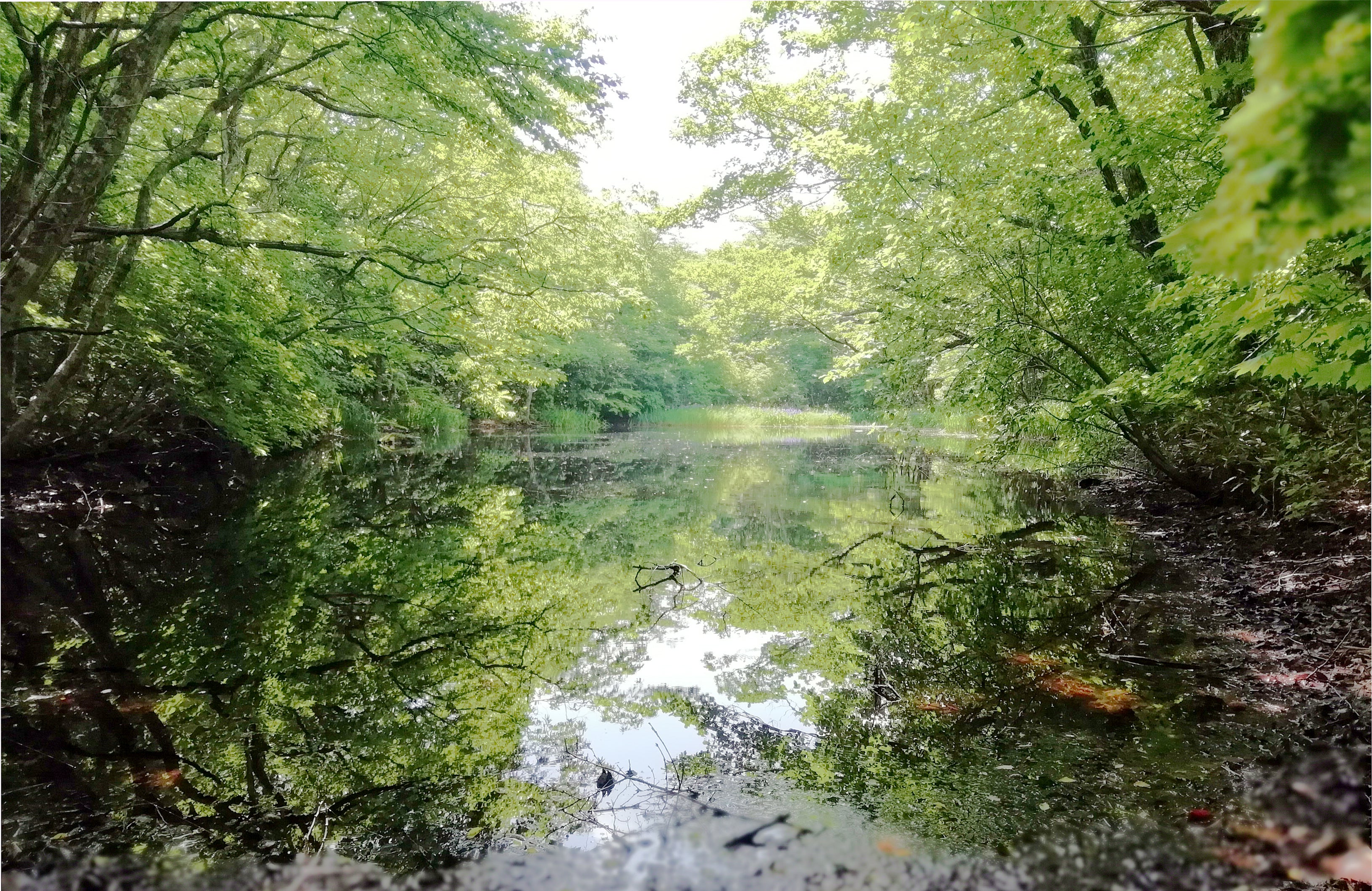 <モリアオガエルの繁殖地として国の天然記念物に指定される平伏沼>