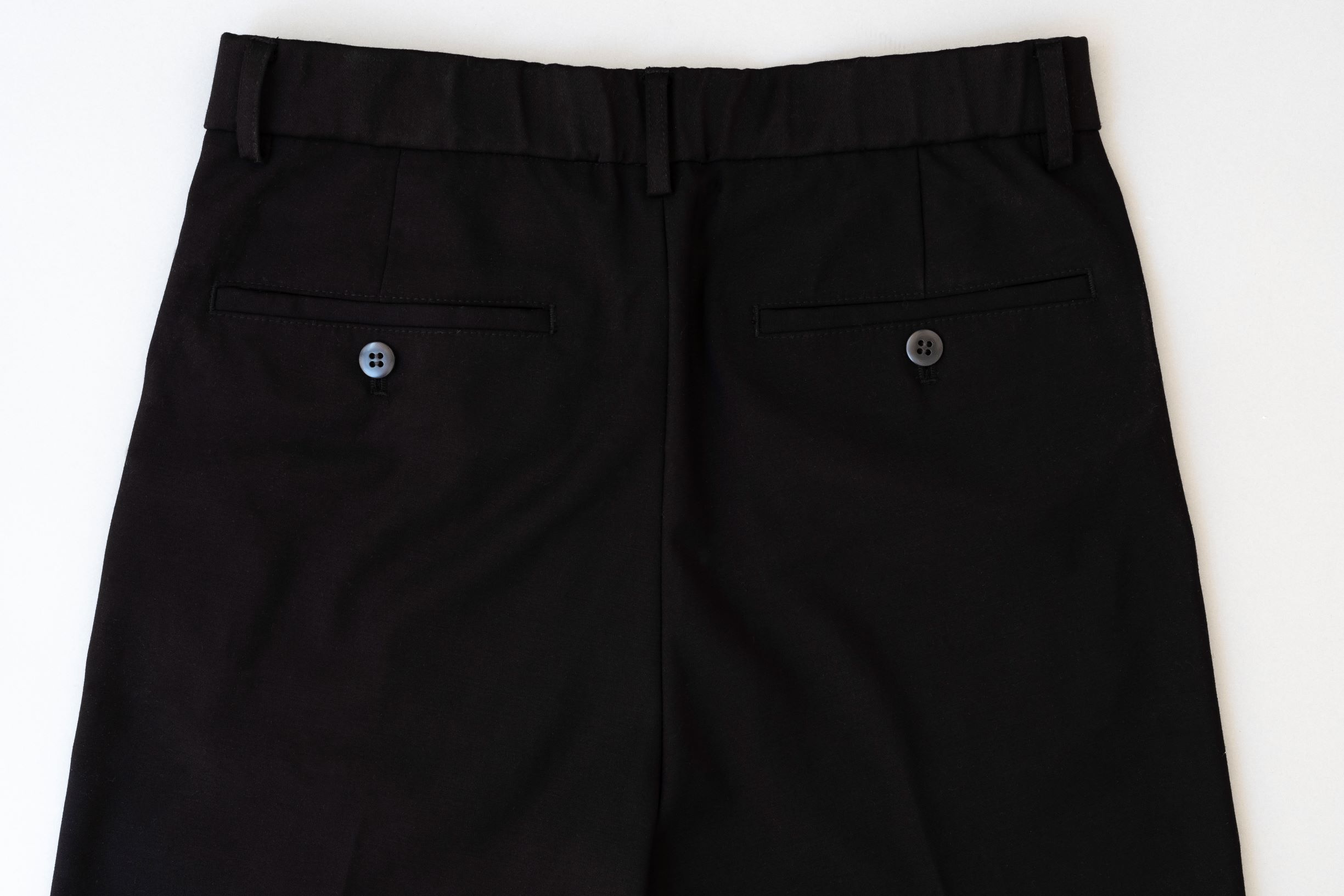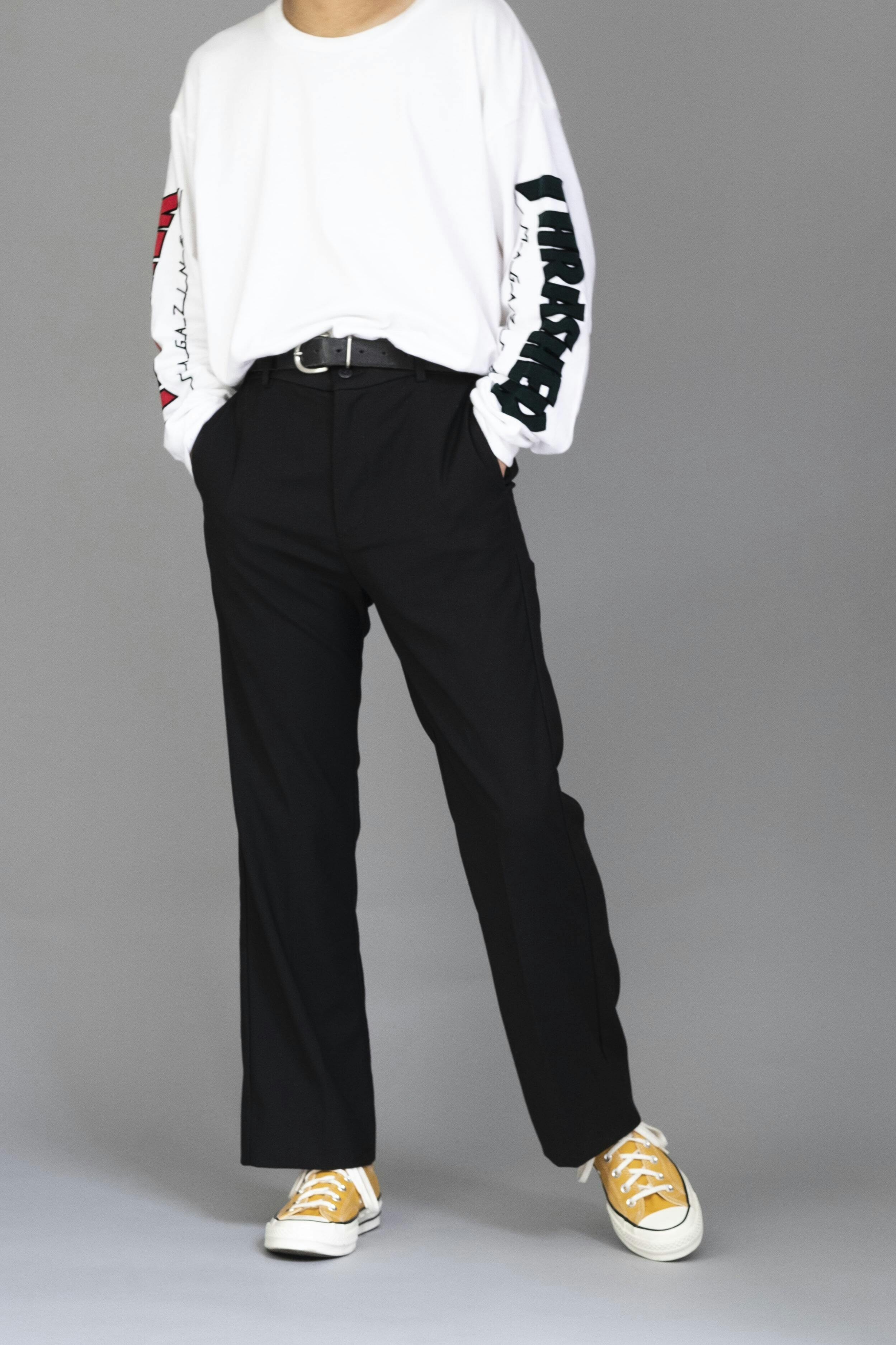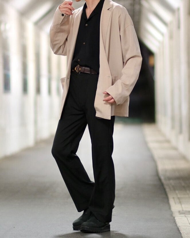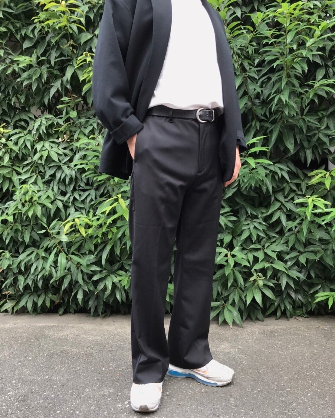 感想:低身長の悩みを解決してくれるパンツです。どこの角度から見ても綺麗なシルエットです。夏はタックイン、冬はコートなどと合わせても足長効果が生まれるので今まで挑戦できなかったコーデも挑戦できる気がします。洗濯ができる、イージケアなのもとても助かります。