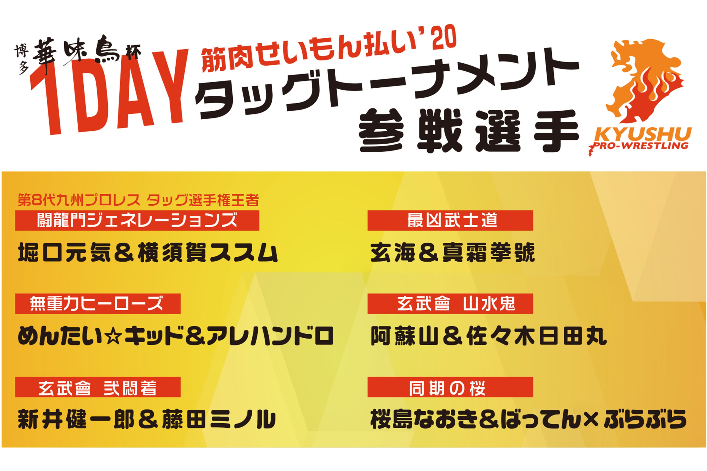 大会名にもあるとおりタッグトーナメントとは、全6チームがエントリーしトーナメント方式で優勝者を決める試合です。