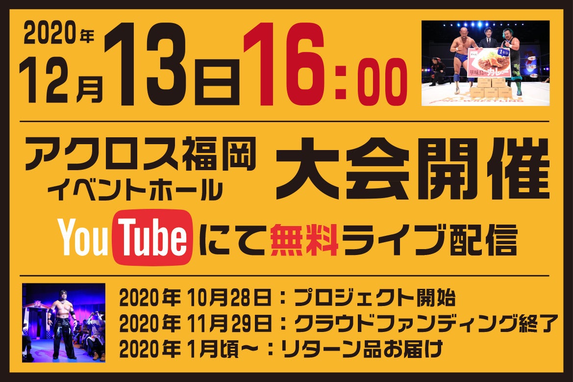 九州プロレスのYouTubeチャンネルでの無料生配信で視聴していただく為にクラウドファンディングを実施させていただきます!