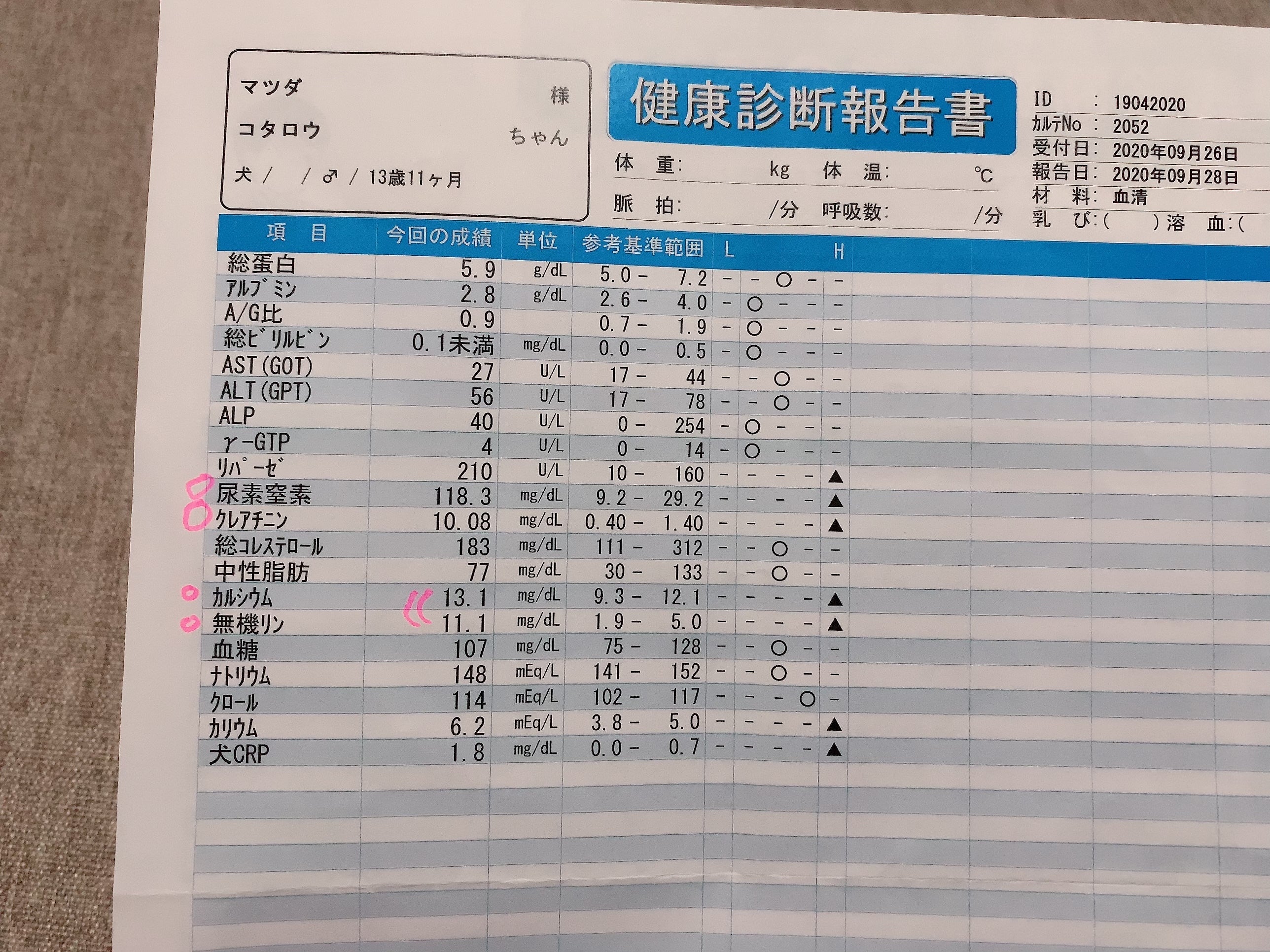 尿路結石を患っているため食事療法をしておりましたがそれ以外は特に病気もなく、無事10/22で14歳の誕生日を迎えることができると思ってた矢先に突然体調を崩し腎不全であることがわかりました。