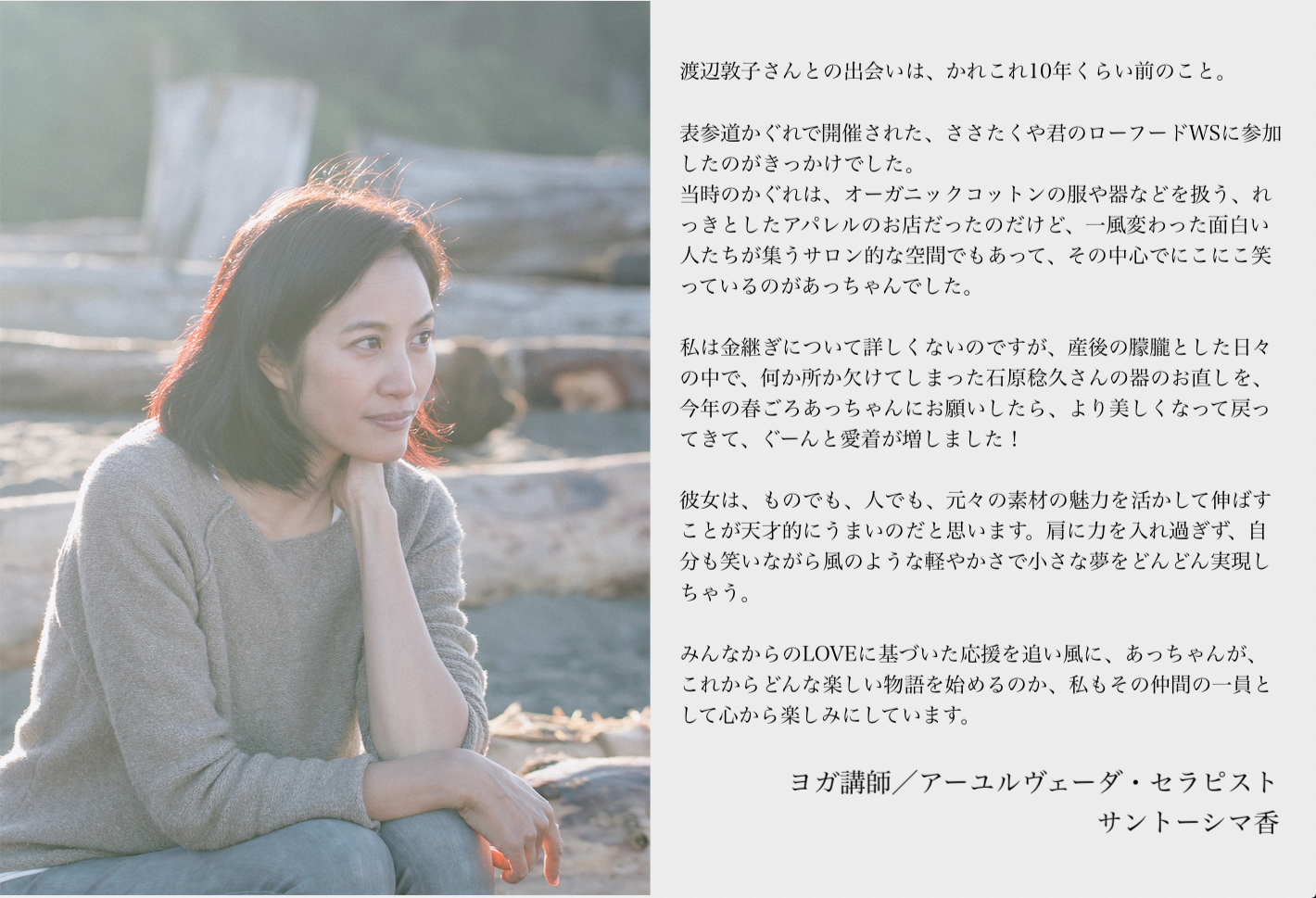2020/12/28 10:46「壊れても直して使える ”サステナブルな器”のブランドを立ち上げたい!」プロジェクトオーナーの渡辺敦子です。初めてのクラウドファウンディングは、12月25日23:59を持って、終了しました。結果はこのようになりました。・支援総額:1,632,400円・支援者数:130当初の目標金額であった100万はすぐに達成し、セカンドゴール150万円も設定しましたが、いつも支えてくださっている皆様のおかげで、無事に達成して終了することができました。 たくさんのご支援と応援を、本当にありがとうございました!気がつけば、130人の方々がご支援してくださいました。こんなにもたくさんの人たちが応援してくださったことに感謝でいっぱいです。事業を始めるにあたって、必要な資金をこうして集めることができることは本当にすばらしいことです。そしてそれ以上に、たくさんの応援が、愛とともにいっぱい届くというのは、ひとりで新しいプロジェクトを始めようと思っている身としては、本当に心強くて感動で、大きな大きな力をもらったのでした。まずはこれから、支援者の皆様へ順次リターンのご対応をさせていただきますが、この感動をもって新しいプロジェクトを始められるという幸せを噛みしめながら、また来年の本格始動に向かって行きたいと思います。年の瀬の慌ただしい時期に、心を寄せてくださったこと、改めまして、誠にありがとうございました!どうぞお身体にお気をつけて、穏やかな新年をお迎え下さいますようお祈りしています◎ もっと見る