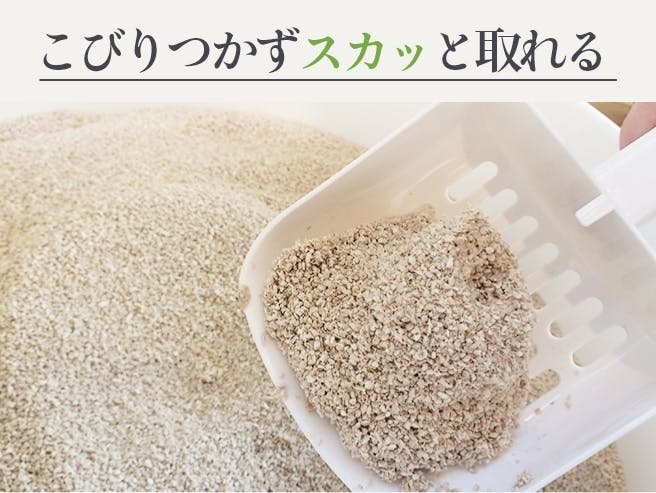 穀物でできたこの猫砂は、とっても自然で、むしろ香ばしい香りがしました。まさに穀物の香りです。 天然の消臭効果ということであまり期待していなかったのですが、驚くほど消臭効果は高いと思います。しばらく使い続けても最初の香ばしさがずっと続き猫のトイレ特有の匂いはほぼしないので、掃除がはかどります。