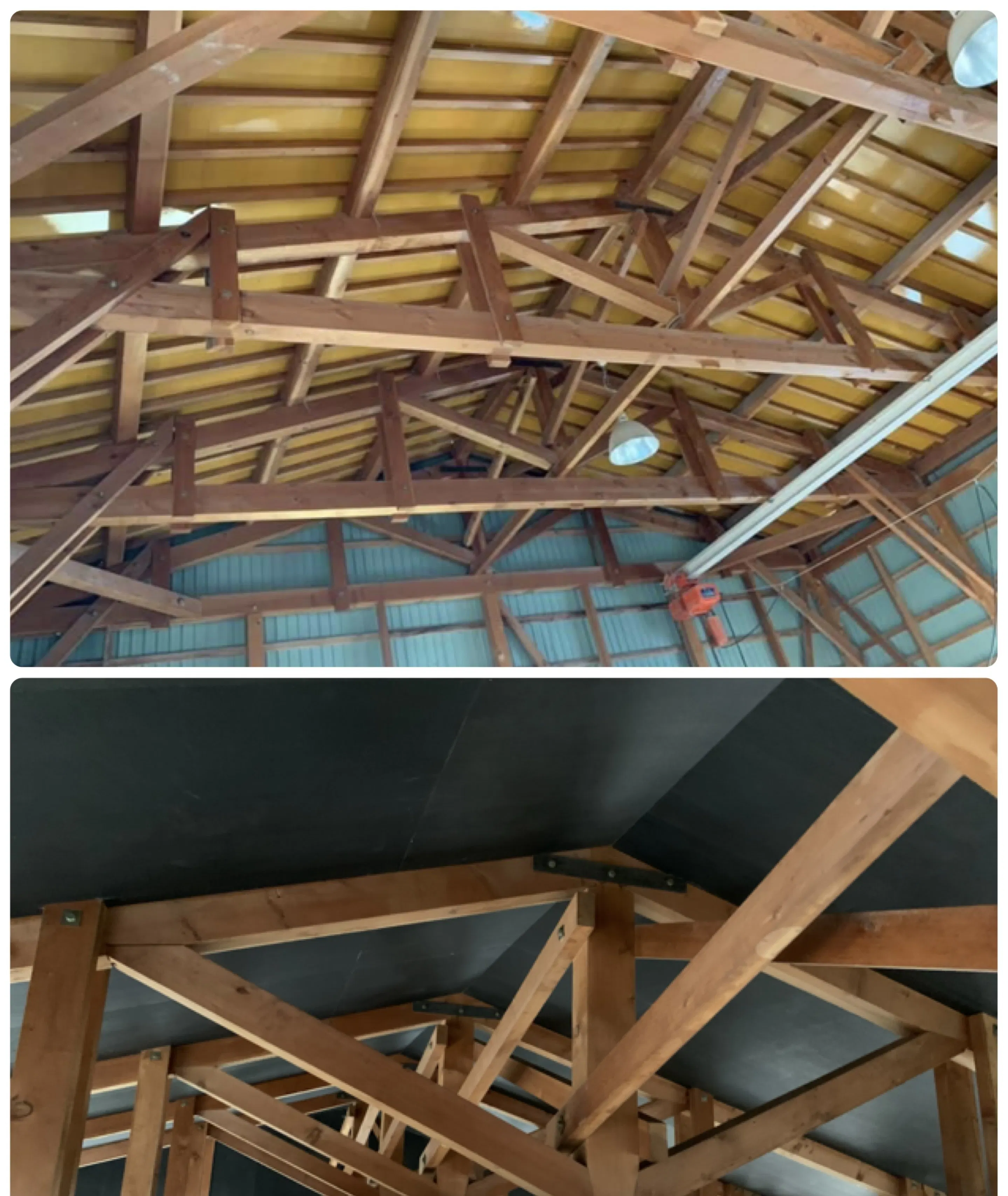 木造の合掌造り(トラス)の部分は浮き上がる様にして欲しいと工務店さんにお願いしました。
