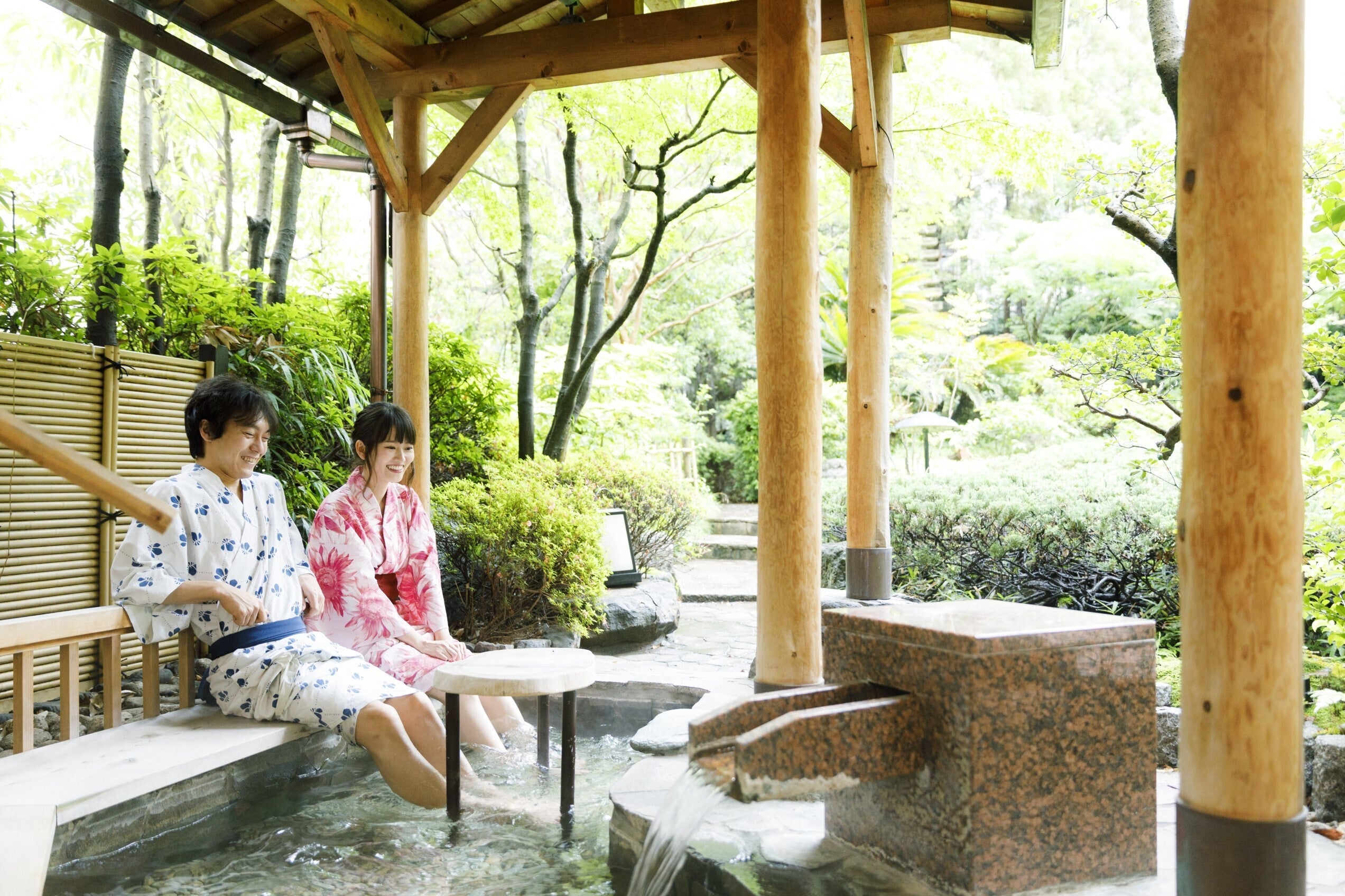 瑠璃光の中庭には、気軽に楽しめる足湯があります