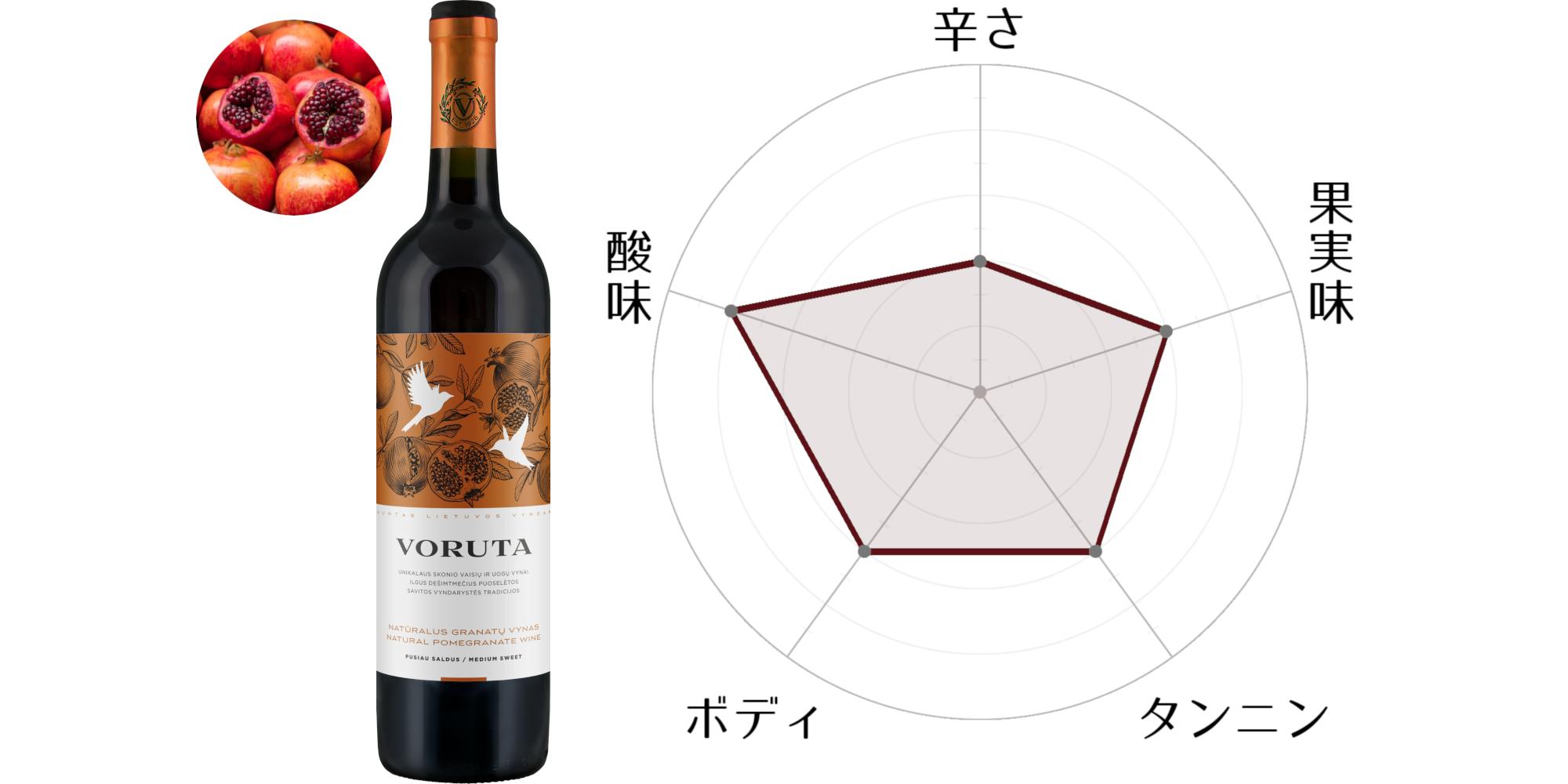 ザクロは品種によって甘味と酸味が様々な果実で果汁にはアントシアニンやポリフェノールが豊富。熟した森のベリーやザクロの果実味に深みのある色合い。食前酒(アペリティフ)に最適で赤肉、辛味のある料理、チーズやスイーツと好相性です。