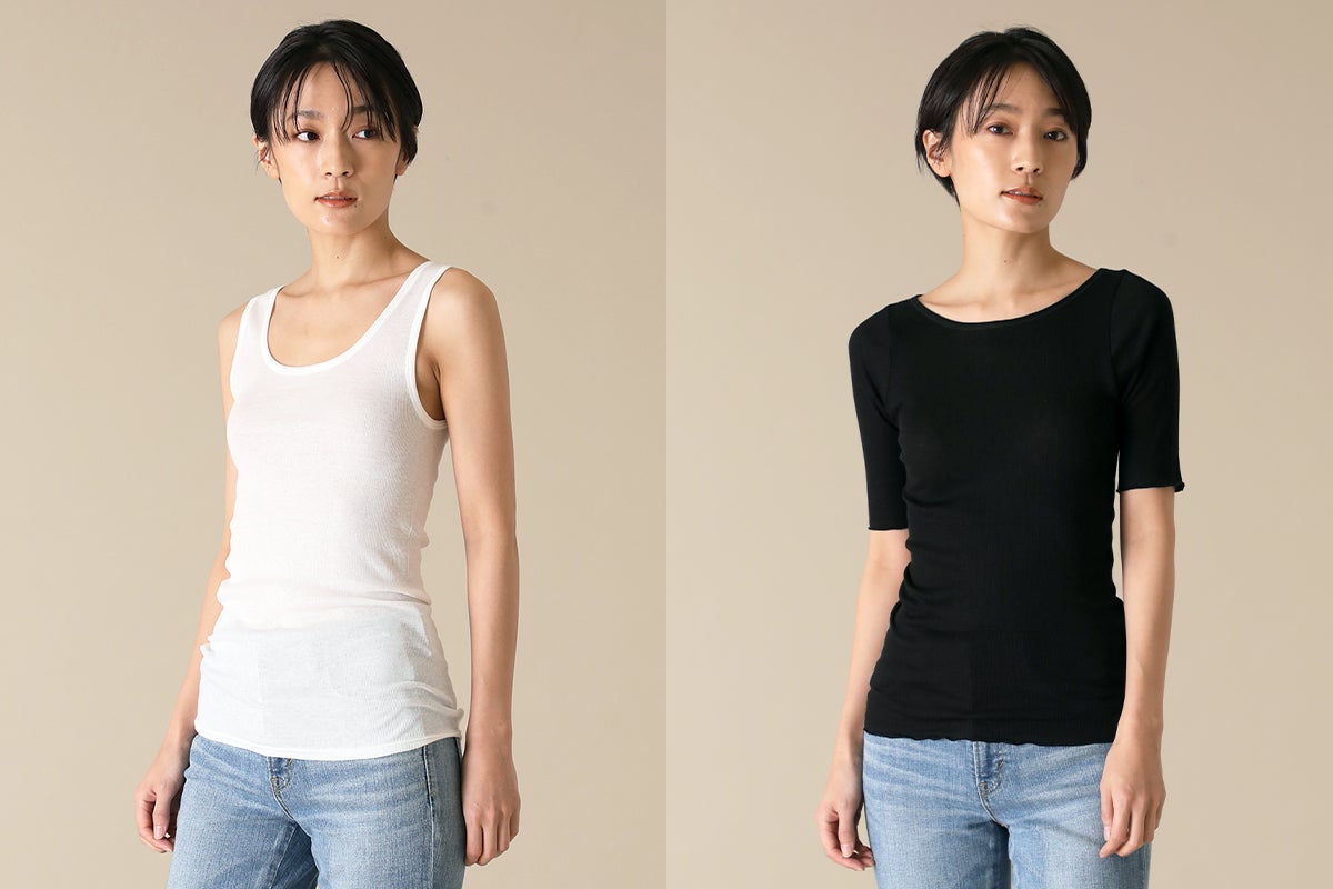 今回ご紹介させていただくのは「丸胴」で作ったタンクトップ、半袖カットソーです。