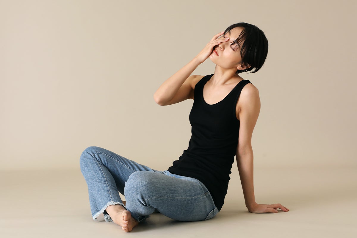 ♦普段Lサイズを着用しているスタッフ(164㎝・40代)タンクトップを試着♦
