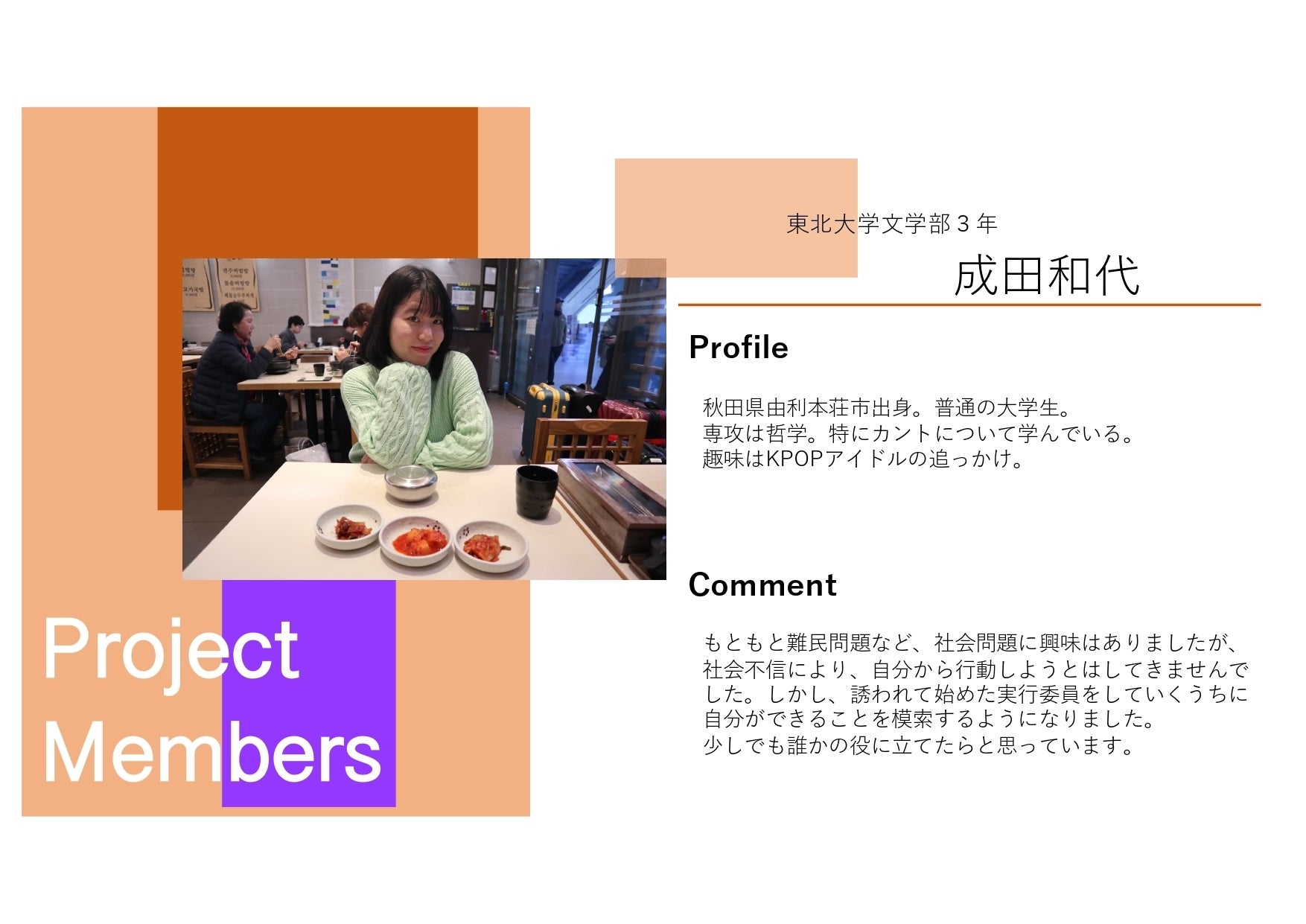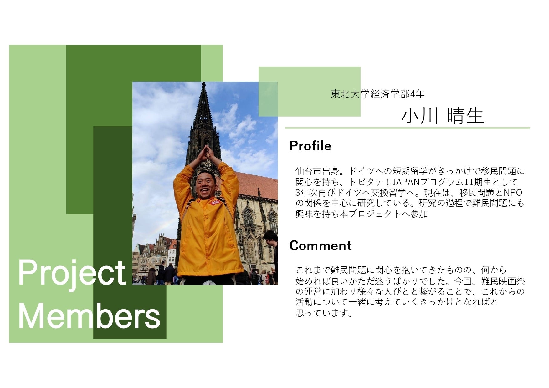 本プロジェクトは東北大学の有志メンバーによって運営されています!今回のイベントを成功させ、継続的な活動を行っていければと思っているので、応援よろしくお願いします!