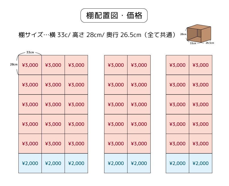 普段は、30㎝ほどの小さな棚(BOX)が自分のお店でその棚でお店をシェアしていますが、店長もみんなでシェアしましょう!