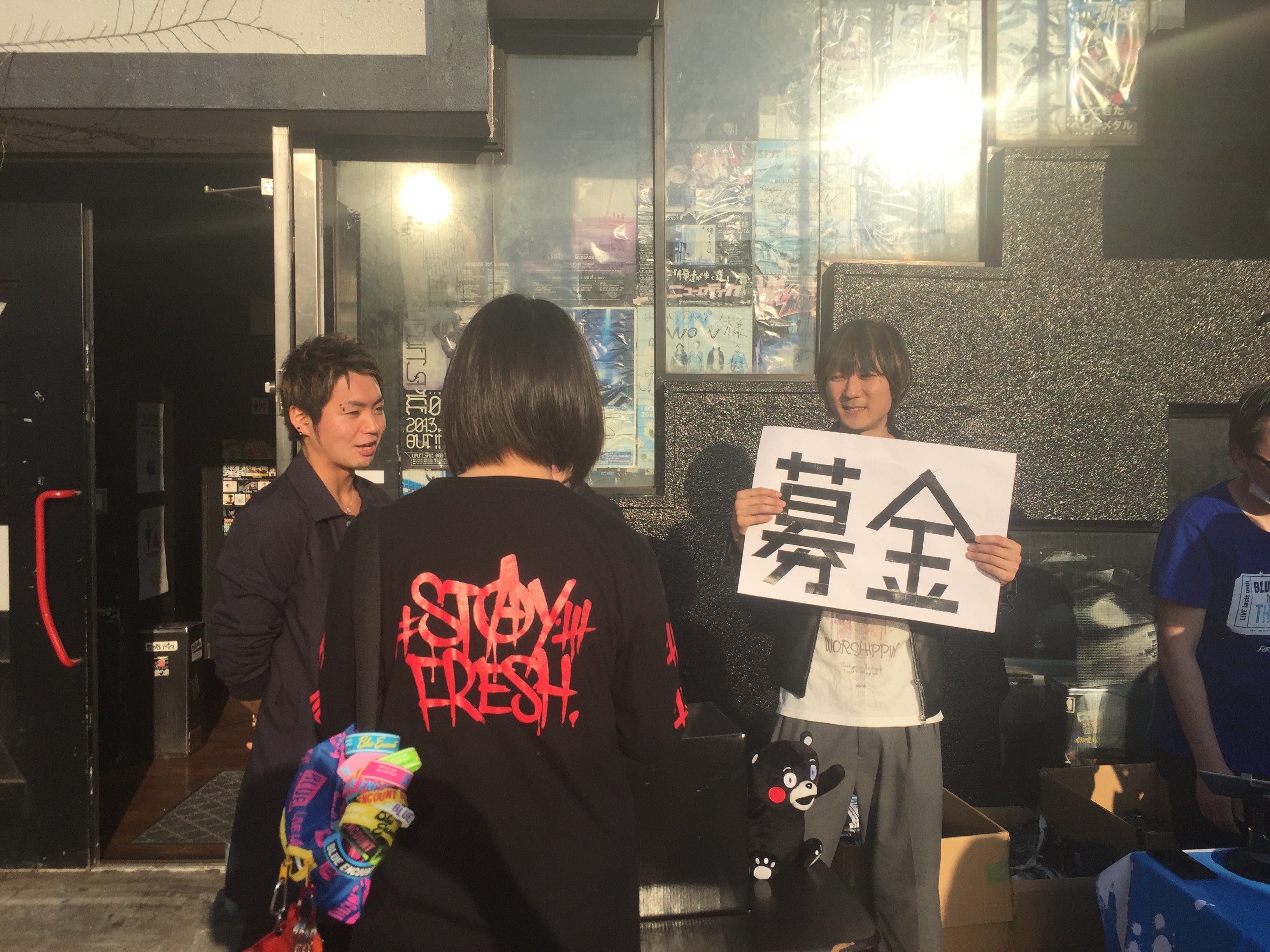 なにか熊本に対してできることはないかと考え、各ライブ会場で寄付金を募ることにしました。