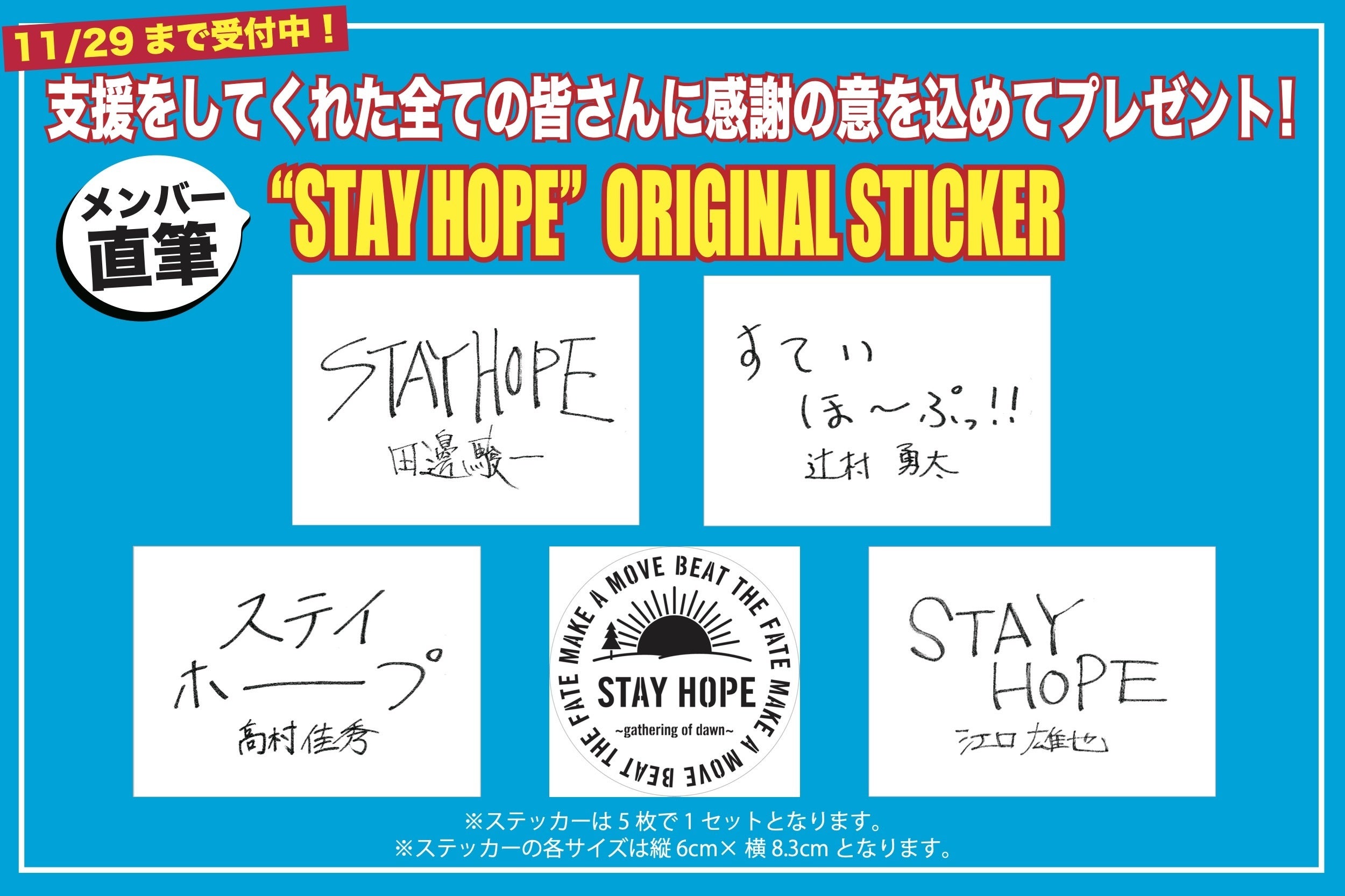 STAYHOPEオリジナルステッカー、5枚入りでお届けさせて頂きます!
