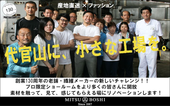 今回はその「MITSUBOSHI 1887」のチャレンジとして、今まで企業との商談で使用していた代官山のショールームを、プロに限らずに一般のお客様にも開放し、「商品を触って、見て、感じられる場」としてリニューアルしたいと思っています。