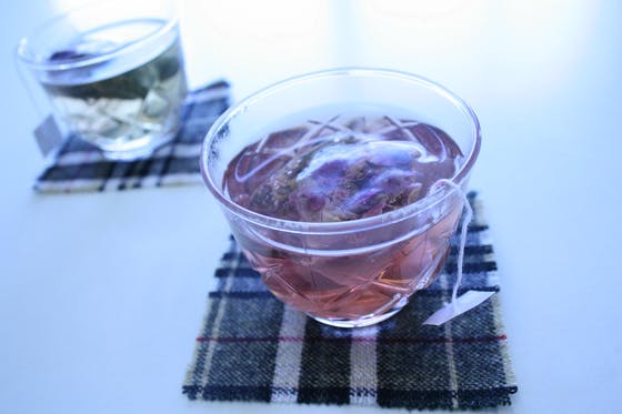 赤いお茶、と青いお茶。