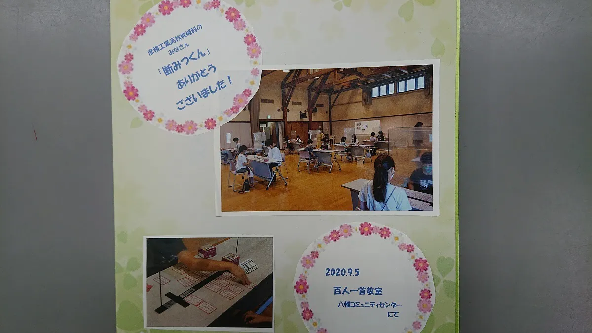 断みつくんは、既に地域のコミュニティーセンターで行われている「百人一首教室」や、英語教室などで喜んでご利用いただいています。以下、本校に届きましたメッセージをご紹介します。