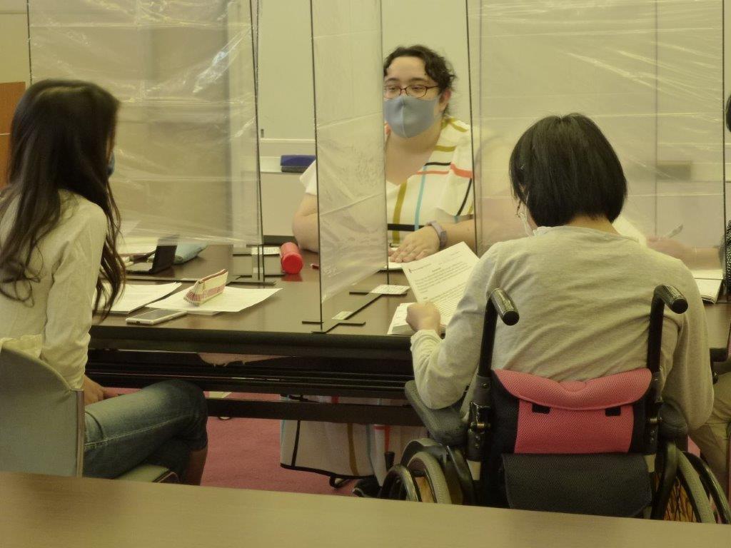 「この度は、貴校で製作された「エチケットウォール断みつくん」をご利用させていただき、我々JCMU一同、大変うれしく思っています。2020年は、多くの人にとって非常に困難な年です。しかしながら、貴校の生徒、教員の方々の活動は、我々がこの試練の時にあって、コミュニティーがどのように団結していくべきか示唆していただき、助けられました。我々の英語クラスでもしばしばこの衝立を利用させていただいており、この衝立のクオリティや職人技を称賛するコメントが数多く、教員やスタッフに寄せられています。今後も皆さんの技術を磨き、こうした活動を続けていっていただければ、将来的に皆さんの周りの世界がよりいっそう良い方向に改善していくことになると確信しています。JCMUより、今一度、皆様に心より感謝申し上げます。」