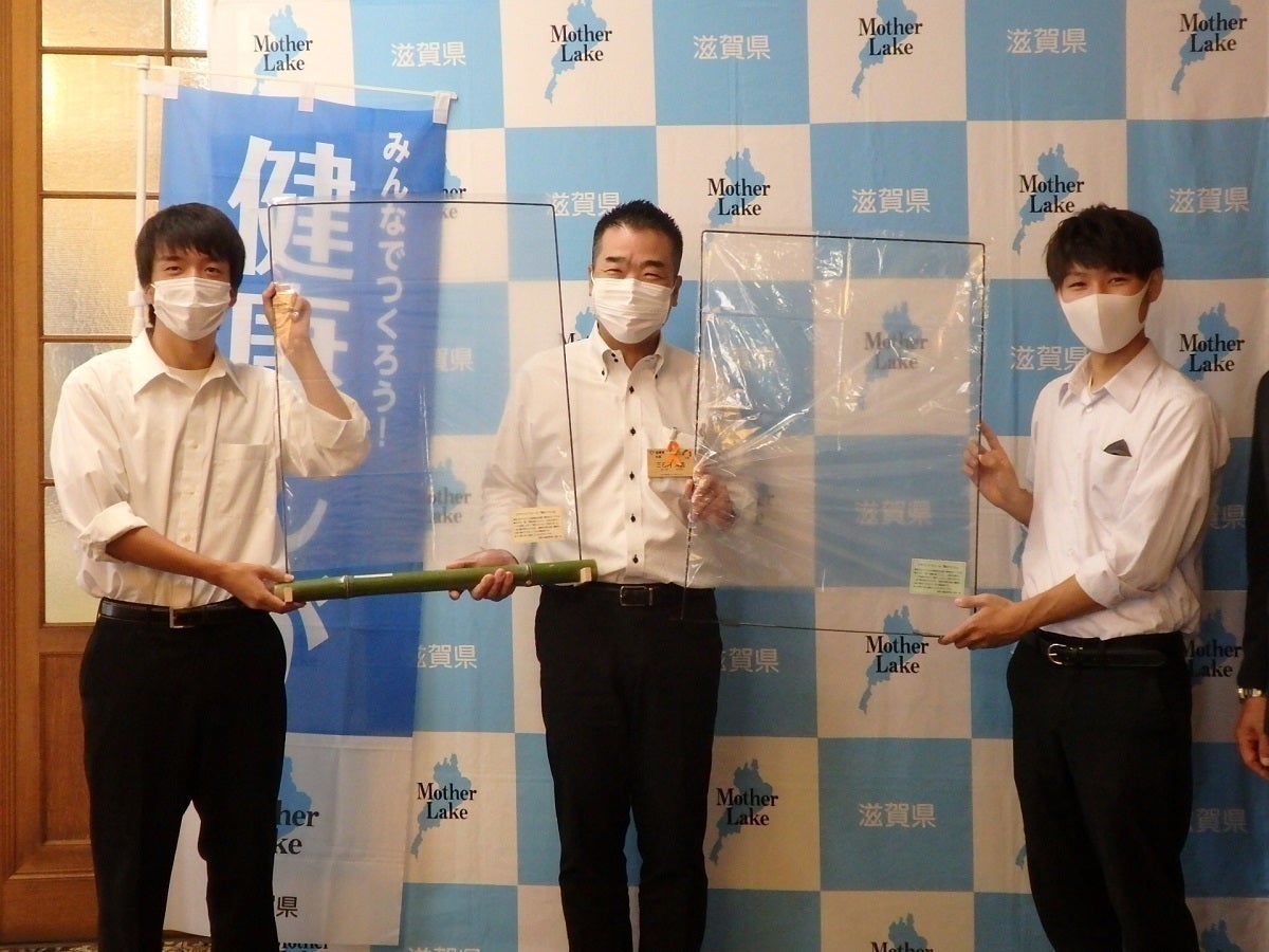 彦根工業高等学校では、生徒と教員が知恵を出し合い、課題研究授業の中で飛沫感染を防止する衝立「エチケットウォール断みつくん(密を断つ)」を製作しました。今回、この衝立を主にコロナ感染の重症化リスクの高い高齢者施設向けに安価で提供し、ご利用いただきたいと考えています。