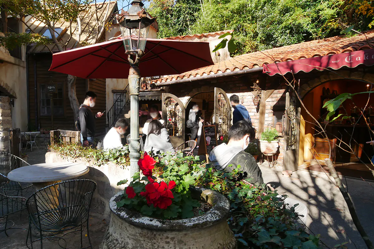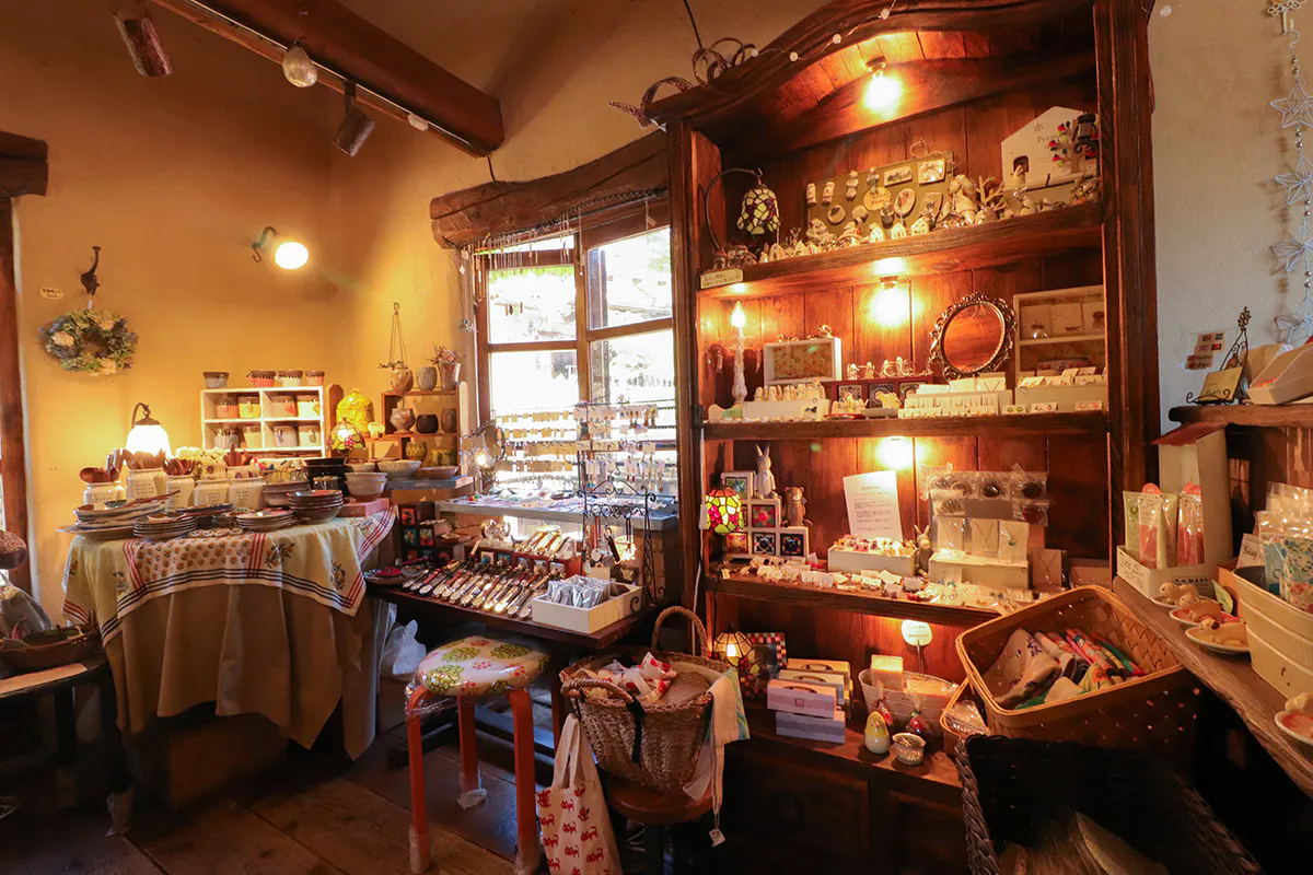 森の中には、ジェラテリア、チーズケーキカフェ、レストラン、アクセサリー・雑貨店、アロマ専門店など12の個性的な小さなお店たちが並んでいます。