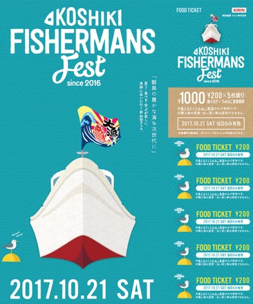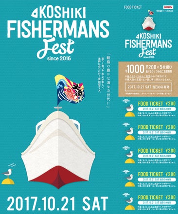ついに!KOSHIKI FISHERMANS FEST 2107のポスターと漁師の浜焼きなどで使用するフードチケットのイメージが完成しました!描かれているいる鳥は、甑島列島が繁殖の南限地に指定されている「うみねこ」。フードチケットのデザインには、ある仕掛けが。