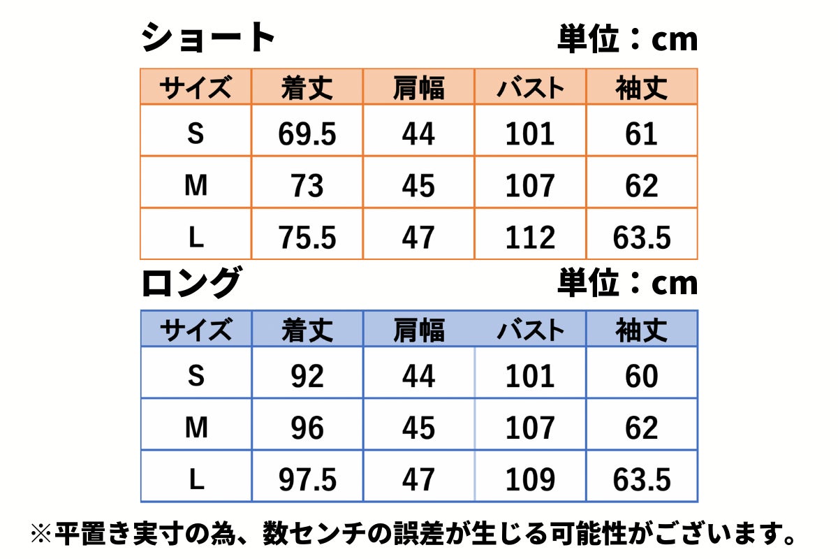 さらにロングジャケットのみブラック/ホワイトの2色からお選びいただけます。