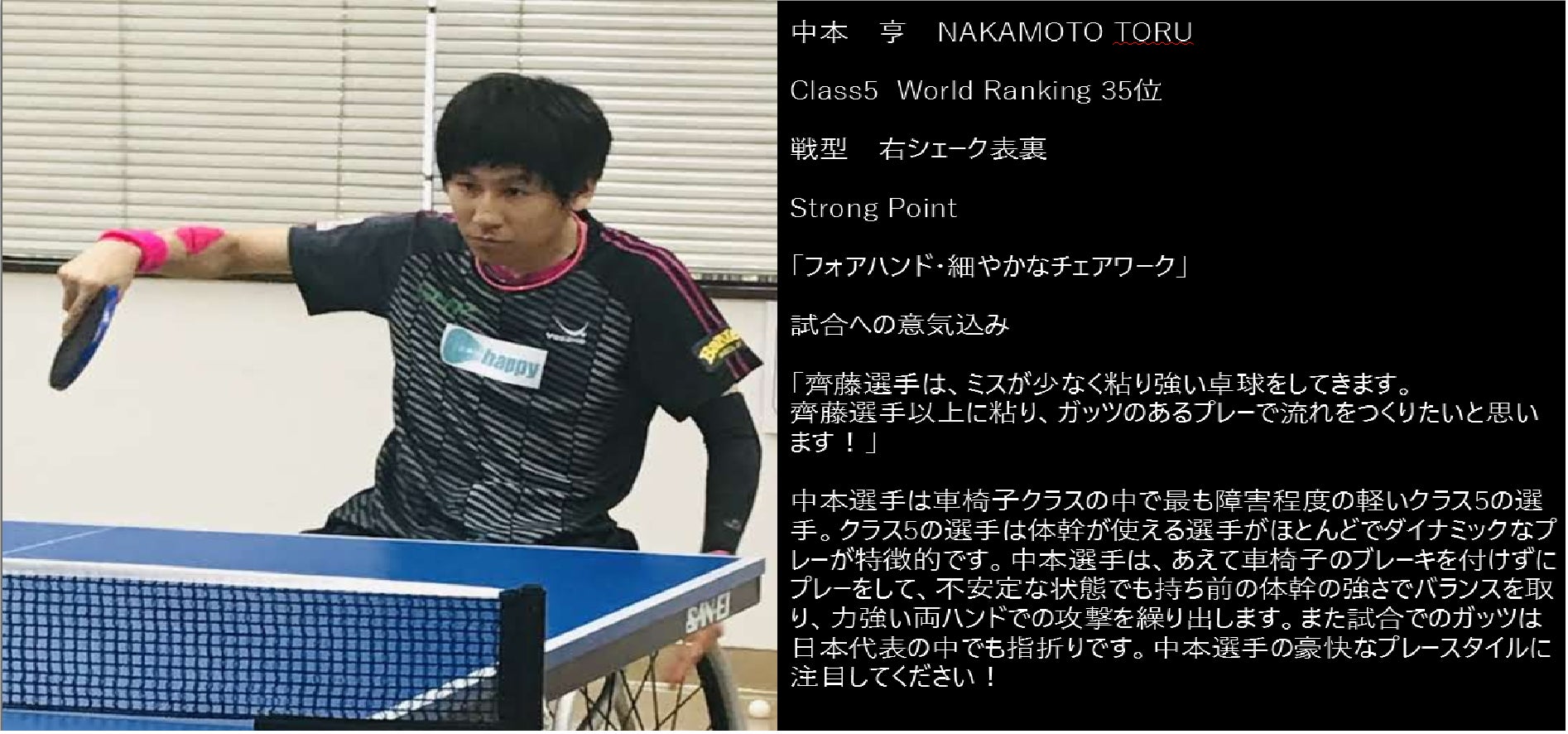 中本 亨選手