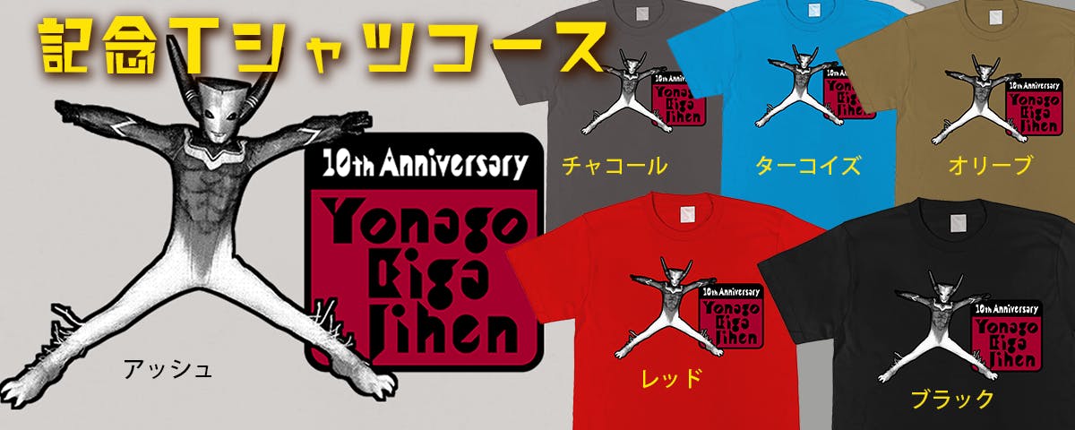 米子映画事変10周年記念Tシャツをお届けします。【米子映画事変】のシンボルキャラクター〈ネギマン〉と〈10周年記念ロゴ〉をデザインした、このクラウドファンディング限定Tシャツです。