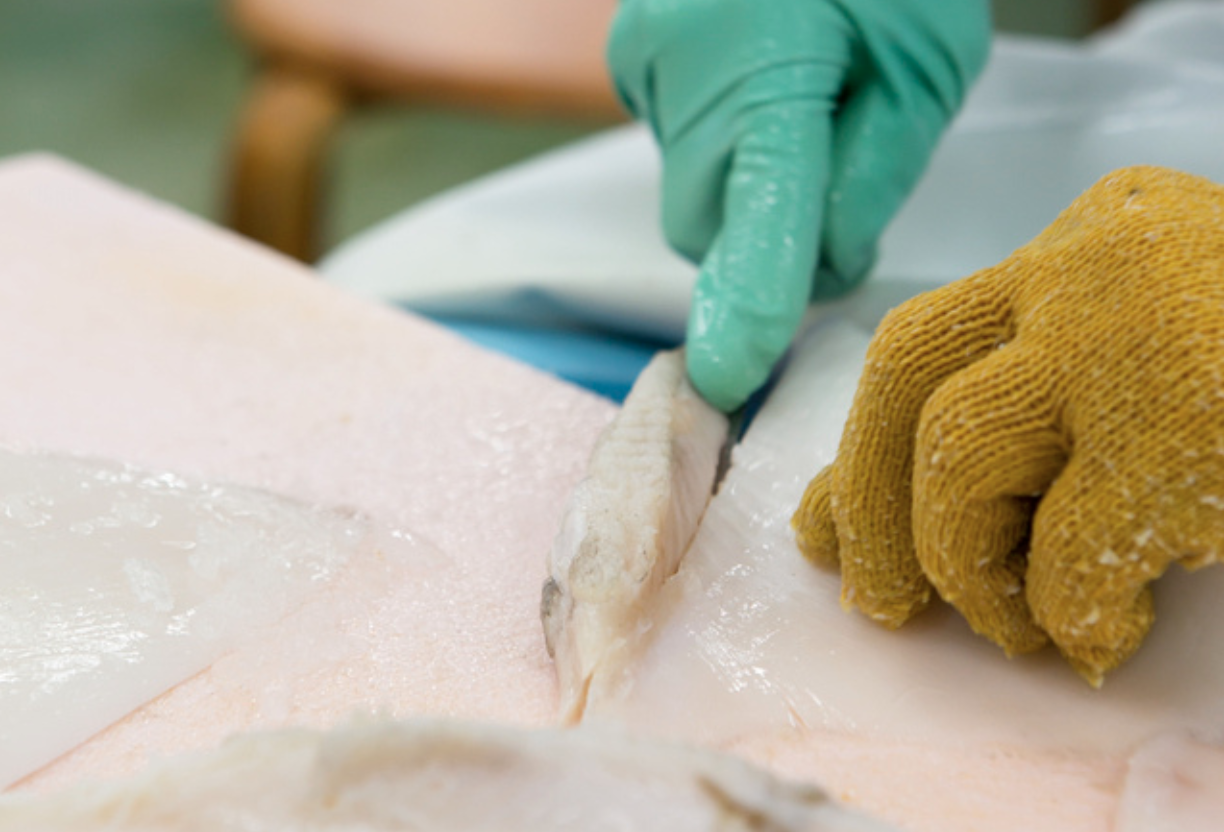 それに対して、気仙沼魚市場では、魚体丸ごと鮫を流通させています。魚市場から仕入れたサメは、身、皮、骨まで、無駄なく使用されています。気仙沼の限りある資源を大切に扱うという強い想いが込められています。