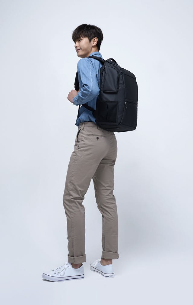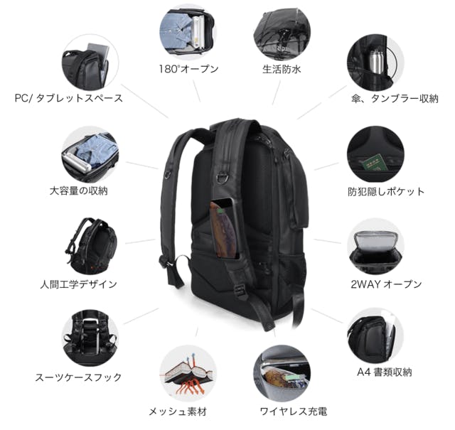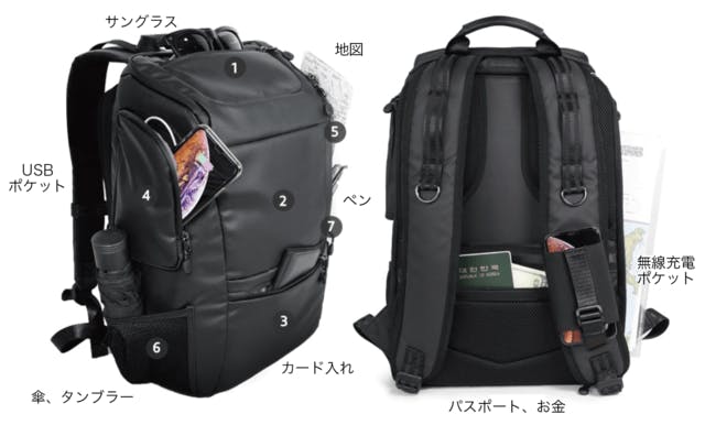 3泊4日も楽々!超多機能ワイヤレス充電バックパック。ONもOFFも「これ1つで」