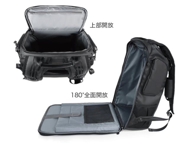 収納する目的に応じて、上部開放と180°全面開放の2WAYでオープンすることができます。荷物の出し入れがしやすい広いデザインです!