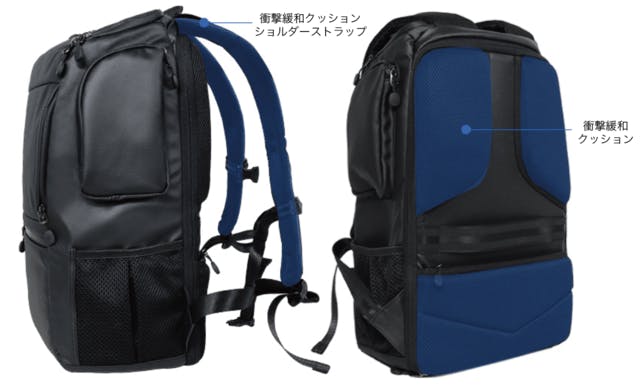 ふんわりとした厚みのあるショルダーストラップが重量の体感を軽減し、エアメッシュ素材の衝撃緩和クッションがさらに使用感の良さを心地良くしてくれます。