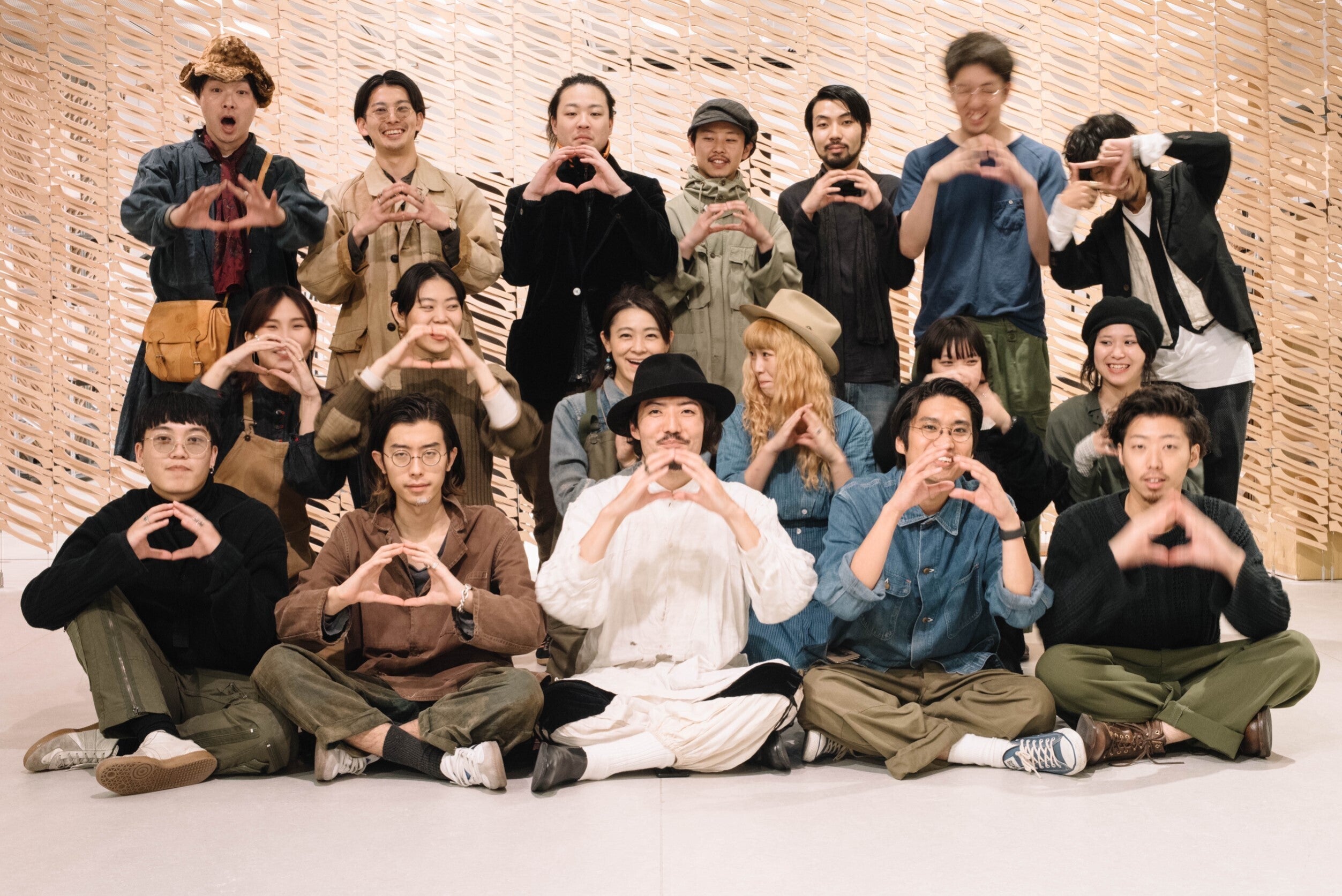 個人のデザイナーや、お店をやってるオーナーさん達などからご協力して頂いて、自分が主催した古い服の合同販売会「ひとのわ」での集合写真の様子です。