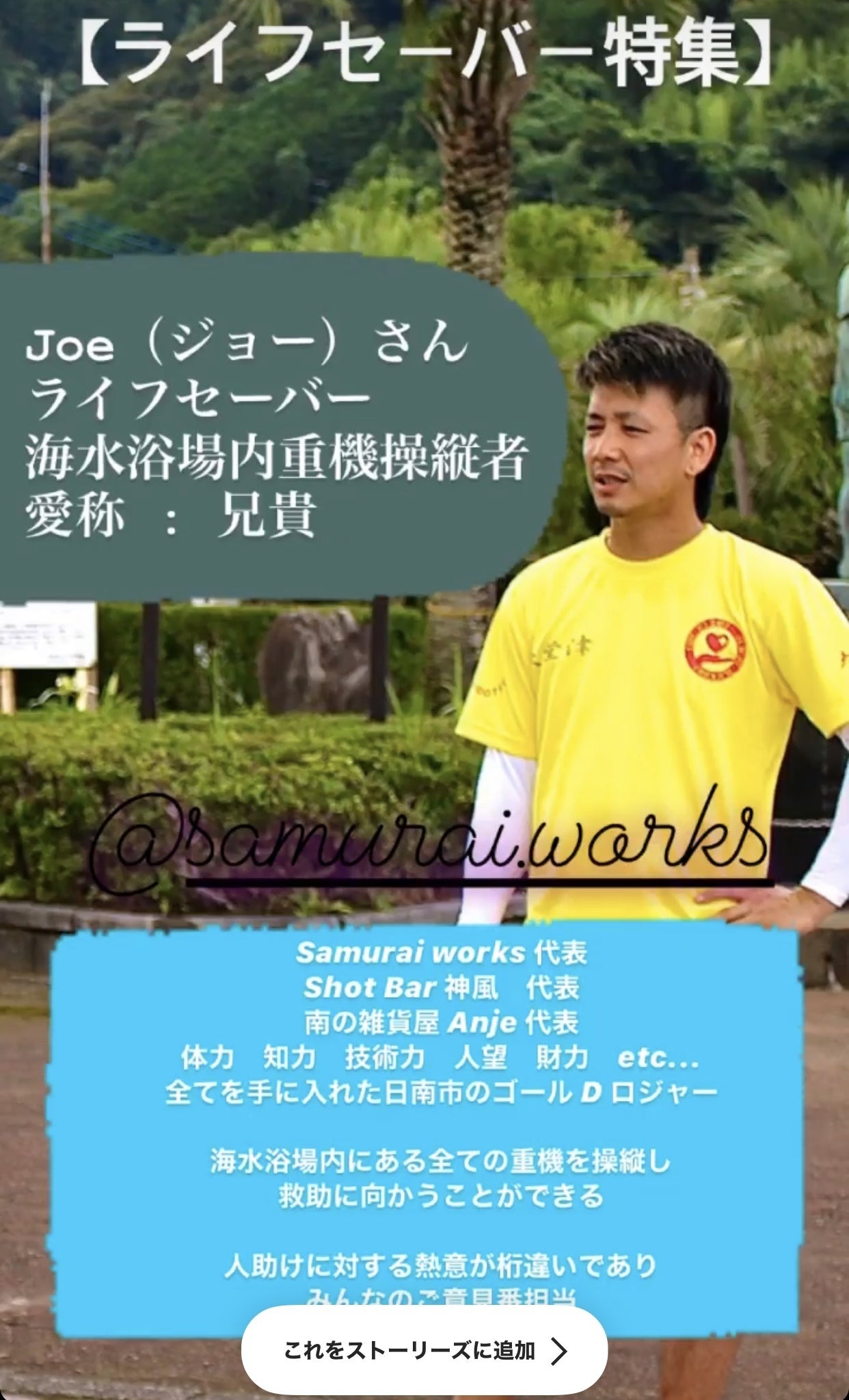 今南郷町で自営業を営んでおりますが、自営業で時間が作れるために私もこの夏の大堂津海水浴場のライフセーバーをやらせていただきました。
