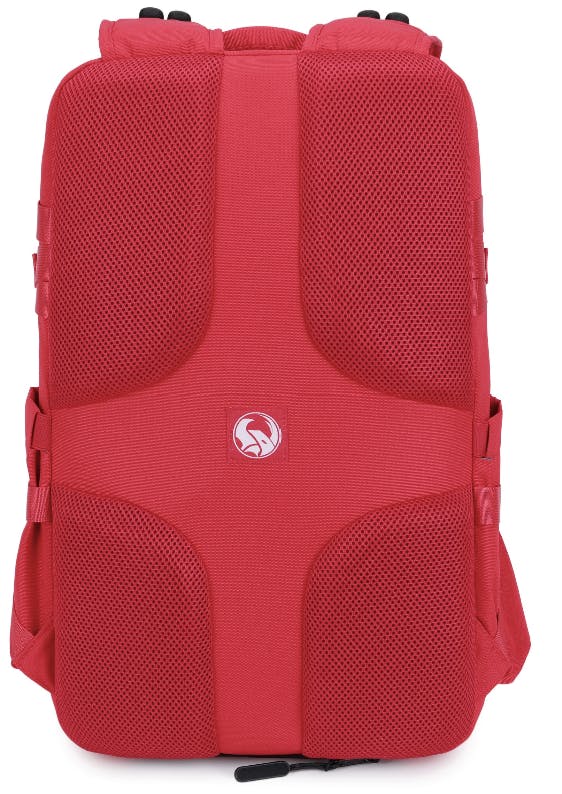リュックの背面は、極厚のウレタン素材を使っています。背中に触れる部分には空間が出来るため、衝撃をやわらげてくれる上に通気性も良く、快適です。背中をやさしく守ります。