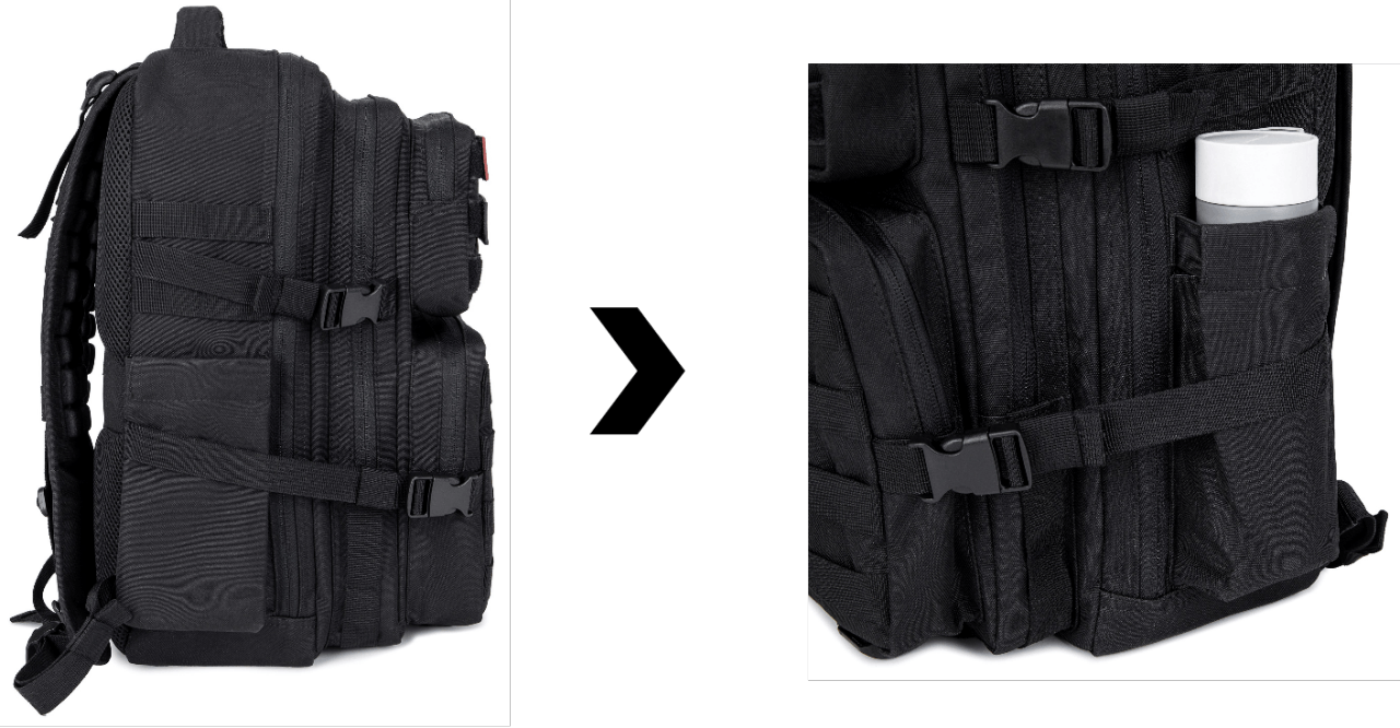 サイドポケットにはゴム素材を採用。ポケットに入れたものが落ちないように、しっかりとホールドします。